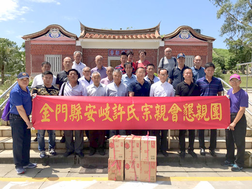 金門安岐、大陸晉江、同安兩岸三地的許氏宗親會組懇親團前往澎湖縣參加兩岸首屆「金門安岐、台灣澎湖、大陸晉江前埔(錢坡)、同安桐嶼」四地宗親聯誼大會,增進同根血脈相連的情感。安岐許氏宗親會長老會會長許加栽帶領許氏宗親一行51人於昨日下午啟程前往澎湖,受到澎湖許氏宗親的歡迎。 大陸晉江前埔(錢坡)、同安桐嶼兩地的許氏宗親,已陸續來金會合,共襄盛舉,受到安岐許氏宗親的熱情接待。金寧鄉長楊忠俊也到場祝福許氏宗親圓滿交流聯誼活動,並歡迎兩岸的許氏宗親經常性組團到金寧鄉「作客」,感受金寧鄉的風土民情。 許加栽指出,許氏一世祖許愛,二世祖許泮派下,傳至五世祖許從質,其次子六世祖許文聳,由晉江市龍湖鎮石龜許厝村,分居晉江市安海鎮錢坡村,為泉州府晉邑七都前坡村開基始祖。先祖許文聳,世代繁衍子孫,傳至六世四十四郎,其次子七世(石龜十二世)四十八郎,遷居金門縣金寧鄉山灶村,為山灶村許氏開基始祖。許文聳傳至六世四十六郎,其子七世(石龜十二世)四十九郎,名許貽遠,由泉郡晉江市安海鎮前坡村,遷居金門縣金寧鄉安岐村,為安岐村許氏開基始祖。 許加栽表示,南宋德佑年間,元兵南侵,泉郡分亂,民生疾苦,四十八郎、四十九郎兩兄弟,偕同五十郎兄弟,名許忠輔,遷居入墾金門縣金寧鄉山灶村,後為謀生之故,四十九郎許貽遠遷徙安岐,五十郎許忠輔遷徙後浦,繁衍生息。 許加栽指出,安岐村許氏開基始祖許貽遠,瓜瓞綿綿,枝榮葉茂,迄今已傳二十六世。安岐八世許肇建,於明嘉靖二十二年,由安岐村遷居廈門市同安區大同鎮桐嶼村,為桐嶼村許氏開基始祖。許肇建世代繁衍子孫,傳至十四世許元台,於清康熙年間,許元台攜眷由桐嶼村遷居澎湖縣馬公鎮石泉里,為澎湖縣馬公鎮石泉里開基始祖。 許加栽表示,為感念許氏先祖、和四十八、四十九郎公的福蔭子孫,金門安岐、台灣澎湖、大陸晉江前埔(錢坡)、同安桐嶼四地的許氏宗親經常往來交流,參與慶典活動,維繫良好的宗親情誼。許加栽說,這一次,兩岸四地許氏宗親將共聚澎湖,進行四天的交流活動,包括,石泉許氏家廟祭祖,參加首屆四地宗親大會,以及觀光旅遊,促進宗親的團結。