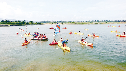 金城國中與金門縣海洋教育資源中心合作於今年會考後,辦理全縣九年級同學的獨木舟體驗課程,地區五間國中,合計650人次參與。為今年度的九年級同學在畢業前提供不一樣的學習課程,也提供學生在畢業前有個難忘的水域運動體驗,並且一起迎接即將到來的世界海洋日(6月8日)與畢業典禮。 金城國中為本縣海洋教育資源中心所在,並且積極推廣本縣海洋教育課程與活動。自前年起開始辦理全縣國三生參與獨木舟與風帆體驗課程,並鼓勵各校同學於畢業前,需要完成本項體驗課程。今年度則於會考後的5月20日起開始辦理全縣國三同學,共計13梯次、650位同學的獨木舟與風帆體驗課程。本項體驗課程活動由金門大學運休系黃仲凌教授帶領運動專業團隊支援,並感謝本縣養護工程所、銘傳大學等單位支援場地。 半天課程中,安排了水域安全說明、基本救生常識講解、獨木舟與帆船運動基本原理、陸上操作之練習與熱身,下水操作帆船、獨木舟、SUP與龍舟。提供學生多項水域運動設施,讓學生體驗水域運動與技能操作。藉由水域運動拉近學生與海洋的距離,增加親海的經驗。參與體驗課程之學生,多位表示這些活動都是第一次嘗試,會想要繼續參與體驗,更有多位學生要求參與第二次的體驗課程。而主辦單位在活動最後更安排了龍舟,讓參與學生體驗傳統文化中的划龍舟,增加班級團隊精神,發揮互助合作功能。 金城國中校長許維民表示,城中為全縣的海洋教育資源中心,多年積極推廣海洋教育,而海洋休閒運動也是其中一環。主要是希望讓海洋休閒運動能進入到國中小的課程中,使全縣學生都能體驗與參與到有別於游泳之外的親水經驗。擴大學生的學習經驗,激發學生對於海洋休閒運動興趣,進而了解島嶼與海洋是共同體。謝謝各校參與本年度的水域運動體驗,也感謝金門大學的黃教授團隊、養工所、銘傳大學等,讓本次活動順利圓滿。更希望同學們能在畢業前夕有個特別的水域運動體驗,一起以親海的態度與經驗,共同迎接今年度的世界海洋日。