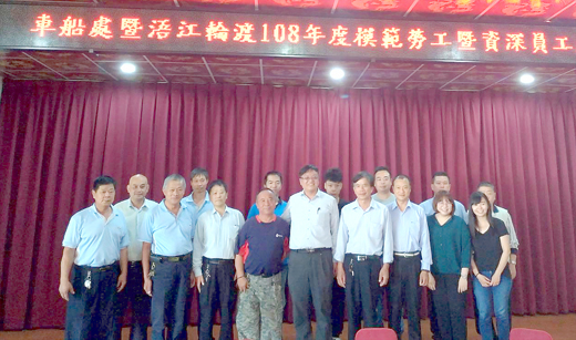 五一勞動節前夕,金門縣公共車船管理處暨經管浯江輪渡有限公司為慶祝108年度五一勞動節,昨(30)日表揚模範勞工,包括車運、船運部門優秀表現人員共計有:李苡璉、劉汝燕、楊志鵬、蘇少彬、蔡明翰、李榮瀾、陳書健、林水湖、薛承刻等9位勞工。另表揚服務滿40年資深員工蔡榮松、陳印銅、蔡明輝等3人。 車船處處長王垣坤表示,車船處暨浯江輪渡公司擔任本縣大眾公共交通運輸工作,全年無休,為金門在地鄉親提供最便利之交通服務,勞工為該處之重要核心,本著奉獻精神,為學生、上班族、鄉親及遊客提供全年無間斷的服務,在一年一度的佳節裡,讓我們向這群辛苦奉獻的勞工致上崇高敬意及真摯感謝。