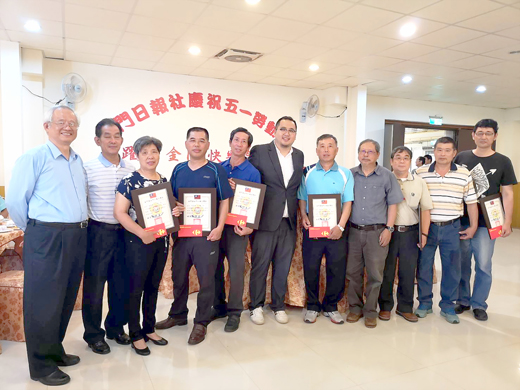 五一勞動節前夕,金門日報為慶祝五一勞動節,昨(30)日中午於金湖地區舉辦餐敘,並同時表揚本報模範勞工,包括翁春松、李金鎗、陳國平、陳能英、陳再生、黃金、吳火來、董將、陳德鵬、魏再榮等10位,頒授獎狀,其中翁春松為縣表揚模範勞工。 本報昨日舉辦「五一勞動節慶祝大會暨模範勞工表揚」活動,縣府觀光處長丁健剛代表縣長楊鎮浯到場祝賀,另包括縣長室秘書陳志強、縣議員董森堡等多位貴賓也到場祝賀,場面熱鬧盛大。