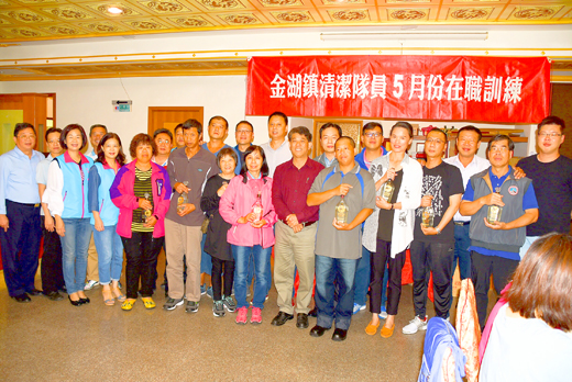 昨日是五一勞動節,金湖鎮公所選於昨日中午表揚模範勞工,以勞苦功高的清潔人員為主,共計表揚包括陳定向(再生工坊)、歐陽佩嵐(資源回收分類)、呂水通(廚餘清運)、楊金粵(割草人員)、黃兆信(道路清掃)、陳秀緞(綠美化人員)、陳淑美(綠美化人員)、謝慶祿(綠美化人員)、莊麗玉(綠美化人員)、張晉榮(綠美化人員)等10人,由鎮長陳文顧頒獎表揚。 昨日表揚大會包括縣政府參議陳金增、環保局科長黃杏玲、前金湖鎮長蔡西湖、金湖鎮民代表會主席蔡乃靖、副主席林麗芬、鎮代表陳向鑫、林嘉森、蔡建偉、陳秀卿、洪海水,及各里里長等人均到場出席,表達敬意與謝意,肯定模範勞工們對社會付出與貢獻。 陳文顧表示,向今年獲得殊榮的模範勞工楷模表示誠摯的祝賀,因為在工作崗位上的卓越表現及辛勤付出,才能得到此項殊榮,實至名歸,同時也要感謝每一位同仁在工作崗位上認真努力對這塊土地的付出與貢獻。 蔡乃靖恭喜獲得殊榮的勞工,模範勞工在社會各領域有傑出表現,受到各界高度肯定與讚揚,他們的服務、專業、態度,都是大家學習的楷模,感謝所有勞工朋友們,在工作崗位上勤奮打拚、默默付出。