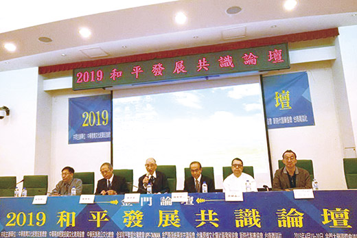 2019和平發展共識論壇,昨日下午在金門大學國際會議廳登場,前陸委會主委張京育指出,金門、廈門分屬兩岸,但彼此一衣帶水,聲息相通。通航、通商、通人、通水、通郵、通電、通氣、通心,均有實現或有實現之可能。金門縣長楊鎮浯表示,金門與大陸通水後,接下來會再朝向兩岸通氣、通電、通橋等新四通努力。兩岸產學界人士同聚一堂,暢談推動金門為兩岸和平發展實驗區之可行性及如何深化兩岸青年融合交流。 這次論壇活動由中華兩岸經貿投資文化教育協會、中華民族致公文化總會、全球和平聯盟台灣總會UPF-TAIWAN、金門縣海峽兩岸共識協會、台灣原鄉文化暨社區發展協會、新時代智庫協會、台商雜誌、中華教育文化經貿促進總會等共同主辦,昨日起一連兩天進行論壇,有來自兩岸專家學者參加,共發表6篇論文。 昨日下午二時舉行開幕式,由前陸委會主委、中華兩岸經貿投資文化教育協會理事長張京育主持,金門縣長楊鎮浯、立委陳玉珍、前國安會諮詢委員邱坤玄、中華教育文化經貿促進總會長張永山、中華民族致公文化總會長陳柏光、外交部前大使戴瑞明、台北商業會會長王應傑、台灣和平聯盟台灣總會理事長陳拓環、台灣金門同鄉會總會長李台山、海峽和平網主席李民欽、秘書長李麗蓁、廈門大學朱人求教授、陳先才教授、山東孫子兵法交流中心副主任荊強、山東孫子研究會副會長曹永孚、浙江萬里學院張全義教授、華僑大學陳克明教授、廣東省台港澳經濟研究會會長李科裕、香港兩岸和平發展聯合總會張蘇永安、澳門公務人員文化協會理事長王馨聲、顧問翁振龍、台灣伏羲文化經貿協會祕書長翁鼎鈞、台商雜誌社社長李曉莊、金門縣閩南文化協會理事長楊再平、金門海峽共識協會理事長林茂林等兩岸人士近60人參與。 張京育表示,十幾年前,金門前縣長李炷烽就倡議「推動金廈和平特區」,其後民調也顯示將近八成金門民眾支持金門成為兩岸和平試驗區的試點城市,金門的戰爭經歷,顯示金門對兩岸和平的意義和價值。張京育說,為了鞏固兩岸和平發展的大局,只有雙方民間致力建構一個促進交流與融合的框架和道路,消極的緩和兩岸對峙,積極的增進友好合作融合,共為中華民族的復興貢獻心力。張京育指出,如果通過兩岸協作,真正建立由兩岸人民共同發展的「金廈和平發展試驗區」,對兩岸關係未來發展,甚至全球政治會產生何種效應?在兩岸分治將屆七十年之際,在金門舉辦2019年「兩岸和平發展民間共識論壇」,應該具有特別的意義,也透由金門論壇,提供卓見,作為大家未來努力的指引。 金門縣長楊鎮浯表示,參與論壇者都是專家,具體各型的方案,務實可行的思路,一定可以激盪出很好的火花,也可以協助兩岸找出真正可行的路,為兩岸出謀劃策。楊鎮浯說,論壇名稱為和平發展共識論壇,符合時下流行,似乎是台灣安全人民有錢,的確符合大多數人期待,但是要和平、要發展,就必須要有共識,只有在有共識前提下,和平發展才有機會。 楊鎮浯指出,講到和平,台、澎、金、馬,最有資格講和平的地方就是金門,曾經歷兩岸特殊的歷史,只有金門,金門人民曾經在歷史當中遭遇一些無法迴避的事情,也只有金門老百姓經歷過苦難的歲月,若連金門鄉親都可以張開雙手擁抱兩岸追求和平,那沒有經歷過這段的人民,有甚麼資格大言夸夸的放棄對和平的追逐,選在金門舉辦論壇,他樂見有此開端。 楊鎮浯表示,金門常常夾處在兩岸當中,是否會尷尬,的確會,但金門也一直在這樣的尷尬中尋找機會,如何處理也考驗金門人智慧,若處理好就會贏來發展際遇,因此尷尬不可怕,重要的是如何有處裡尷尬的智慧,第一個和平的主題,金門人最有資格詮釋。兩岸戰爭分治起於金門,和平也起於金門。因此選擇在金門舉辦兩岸和平發展共識論壇,特別具有意義。 楊鎮浯指出,中共國家主席習近平點名福建與金門地區加速融合,也具體指出水電橋氣接軌,金門與大陸通水後,接下來會再朝向兩岸通氣、通電、通橋等新四通努力。 立委陳玉珍表示,她在立法院質詢陸委會主委陳明通,小三通10幾年來,廈門進步神速,金門卻沒有什麼進步。台灣會不會覺得不好意思,應該檢討改進,才能對得起在前線守護台灣的金門人。陳玉珍說,金門可以讓兩岸學子在金門共同交流學習,和平意義重大。 共同主辦的金門海峽兩岸共識協會理事長林茂林表示,舉辦論壇的目的是希望為金門發聲,凝聚共識,推動兩岸融合交流,以及推動金門為兩岸和平發展實驗區,提出建言,藉提供兩岸政策諮詢之參考。 李台山說明旅台金門同胞的心聲,兩岸政策決定金門命運,也決定台灣的命運。 中華民族致公文化總會長陳柏光表示,台灣執政黨強烈態度與大陸對立,造成兩岸關係朝危險發展,對於兩岸如何和平發展的對話溝通就顯得很重要。金門在兩岸關係和平發展扮演的重要角色地位。他認為,金門體驗過戰火,所以真正了解戰爭無情與和平可貴。讓金門大橋成為兩岸和平發展的起點。 政大教授邱坤玄主題演講。他認為,兩岸關係發展必須存在默契和互信,台灣只有換黨執政才有可能突破僵局。金門是化劍為犁的和平典範。邱坤玄批判綠營的「借殼上市」策略,其實就是模糊化中華民國。邱坤玄建議,未來可以在金門成立冷戰研究中心及兩岸中華文化書院。 開幕式後進行的議題,主題為如何深化兩岸青年融