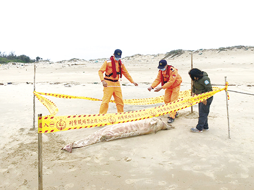第九岸巡隊復國墩安檢所執勤人員於2日下午16時左右,在復國墩村莊左側海灘附近發現一隻死亡鯨豚,長約260公分、高約20公分、寬約23公分,經判斷是瀕絕保育類「中華白海豚」,死亡原因不明。 金馬澎分署第九岸巡隊表示,該隊復國墩安檢所執勤人員於2日下午16時許,在金沙鎮E54據點岸際、復國墩村莊左側海灘附近發現一隻死亡鯨豚,該隻鯨豚疑似為「中華白海豚」;整體外觀大致良好,死亡原因不明。 第九岸巡隊表示,復國墩安檢所人員執行守望勤務時,於金門縣金沙鎮E54據點岸際沙灘處發現一隻死亡鯨豚屍體,隨即通報海巡署第十二巡防區勤務管制中心,由勤務管制中心通報中華鯨豚搶救協會、金門縣政府農林科及動植物金門檢疫站有關人員前往處理,經縣府農林科科長鐘立偉比對認為,應為瀕絕保育類鯨豚「中華白海豚」。 中華白海豚又稱印度太平洋駝背豚,常於台灣西部海域發現蹤跡,惟目前數量已大幅銳減,並被列入保育紅皮書中的極危物種,「中華白海豚」成長需花費10年時間,才能生育,雌豚懷孕期為11個月,每胎只能生育一隻海豚寶寶,一生最多可生6隻幼豚,珍稀程度由此可見,目前該白海豚屍體經採樣後已就地掩埋。 據了解,近幾年在金門海灘發現「中華白海豚」屍體的案例至少有2起。包括2016年8月在金寧鄉安岐出海口有一隻約2公尺長的雄性中華白海豚屍體,當時研判是海上自然死亡。同年10月在烈嶼鄉九宮碼頭港區發現一隻死亡的中華白海豚雌性幼體,由於內臟組織腐爛嚴重,確切死因難以辨別。 海巡署呼籲,保護保育類動物是我們每一個居住在這塊土地上人們的責任,為了給予後代子孫更豐富的自然資源,除不應濫補濫殺保育類動物外,更應積極地愛護我們生存的環境。若民眾有遇到鯨豚擱淺的狀況,請立即撥打118免費報案專線,海巡署將於第一時間,前往搶救。