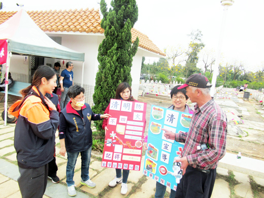 清明連續假期,各鄉鎮地區勢必湧入大批掃墓祭祖人潮,有鑑於以往掃墓期間山林火災層出不窮,金寧消防分隊特於清明節掃墓期間結合義消、婦女防火宣導隊針對轄區內易發生雜草火警之地點加強防火巡邏及搶救演練,並前進各機關、校園、賣場、商店實施清明防火宣導,推廣消防常識,提醒民眾遵行「四不二記得」掃墓防火注意事項,以防範火災發生。 鑑於民眾掃墓祭祖時易因燃燒冥紙、墓園周邊雜草造成空氣污染,並因濃煙瀰漫道路兩旁,影響行車視線釀成交通事故,甚至不慎波及周遭農作物、建築物造成嚴重危害。金寧消防分隊宣導時特別提醒民眾,掃墓祭祖時切記「四不二記得」:「不」亂燒雜草、「不」亂丟煙蒂、「不」讓冥紙飛揚、「不」燃放爆竹、「記得」將垃圾帶走、「記得」將餘燼撲滅。並建議民眾可自備水桶、瓶裝水、水袋、鏟子等,於火勢初期即可先行撲滅,以避免擴大延燒釀成災害。而往年經常可見有民眾隨意亂燒雜草,進而引發林野火災,不僅使消防人員疲於奔命、浪費寶貴的水資源,也是造成空氣污染的元兇之一,並且違反了相關法令而觸法將會受罰。 此外,金寧消防分隊會同義消、婦女防火宣導隊成員於清明連假期間假金城公墓設立警戒、供水站,懸掛防火宣導標語、提供墓地警戒及民眾滅火所需之水源。希望民眾能多加配合,並提高警覺,做好防火的各項工作,避免火警及其他意外事故發生,共同守護安全無虞的環境。 消防局長楊肅凱表示,慎終追遠是中國人的善良風俗,但進行掃墓及祭祖活動之後,一定要把殘火熄滅,希望鄉親互相叮嚀,並再特別提醒「四不二記得」,即「雜草不亂燒」、「煙蒂不亂丟」、「冥紙不飛揚」、「爆竹不燃放」、並「記得滅餘燼」、「記得收垃圾」等動作,期望在民眾的配合之下,共同努力減少墓地山林火警發生,以維護美好的環境及生命財產安全。
