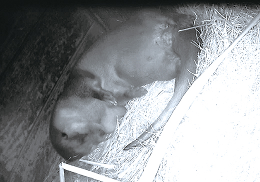 金門國家公園管理處昨(五)日表示,收容照養於台北市立動物園的歐亞水獺「金莎」,於3月9日晚間約5點再度平安生下小寶寶,(圖為監視器影像畫面),看到金莎為剛出生的小寶寶舔舐乾淨身體,依偎入睡。 大家還記得2014年從金門送到台北市立動物園的歐亞水獺「大金」、「小金」和「金莎」嗎?2018年的農曆大年初一「金莎」順利產下和「小金」愛的結晶│「浯優」、「浯綠」,今(2019)年3月9日晚間約5點左右,再度平安誕下1隻小寶寶。不同於上回生產前的緊張與不安,這回已經累積足夠育幼經驗和技巧的水獺媽媽,顯得十分淡定和從容,加上這次只有一隻新生寶寶,不用和其他手足競爭奶水,成長速度也比龍鳳胎的哥哥「浯優」和姊姊「浯綠」快上許多。 根據台北市立動物園保育員觀察,「金莎」在兩次懷孕的後期,就會開始精挑細選適合的材料,每天很努力地銜回巢箱內做窩,然後這一胎銜回箱內的巢材數量比起上一次明顯較少,生產和育幼的行為卻相對穩定許多,推測應是與保育員平日裡很努力地進行減敏訓練,以及氣溫在逐漸回暖等因素有關。另外上一胎懷孕時,「金莎」每天都很努力的進食,活動量也未曾減少,但這一胎「金莎」在懷孕期間卻一反常態的嗜睡,常常睡到早餐或午餐都懶得起來吃,只有在夜深人靜後,「金莎」才會醒來開始活動和進食。由於保育員觀察「金莎」在夜間的精神和活力,都在正常安全的範圍內,因此白天裡就讓準媽媽盡情補眠,盡量不去干擾牠休息。 歐亞水獺的育幼方式和小爪水獺完全不同,公水獺(「小金」)並不會協助育幼,所以自上一胎開始,「金莎」在生產後都是獨自哺育幼仔的。幸好「金莎」的母性很強,即使是第一次當媽媽就面臨「一打二」的艱鉅挑戰,也戰戰兢兢地一邊摸索一邊學習,總算將龍鳳胎「浯優」和「浯綠」順利扶養長大;而這次「金莎」只要專心照養一隻小寶寶就好,加上第二次當媽媽已具備足夠的經驗和技巧,這回在育幼時,「金莎」就顯得駕輕就熟許多。 金門國家公園表示,未來待性別確定,將會與台北市立動物園、金門縣政府共同辦理發動FB請民眾一起來預測性別及命名等活動,歡迎民眾持續至該處官網或粉絲頁鎖定相關訊息。