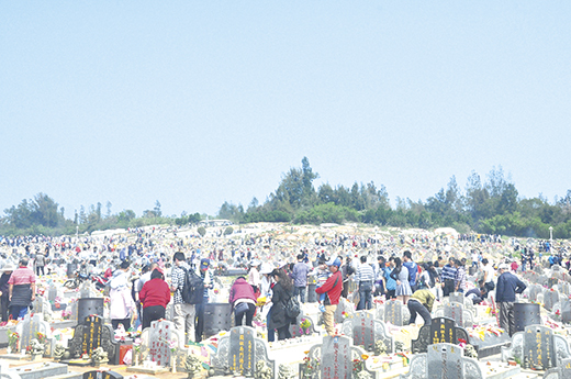 昨日是清明節,全縣各公墓處處可見掃墓人潮,整個掃墓也於昨日下午達到最高潮,民眾帶著糕餅水果、鮮花等大包小包的祭品,虔誠在先人墳前祭拜,表達一份孝思的心意。殯葬所秉持縣府「以民為尊、鄉親至上」的服務理念,於各民眾公墓提供清掃用具供應、加派人員協助等服務。金寧分駐所規劃公墓周邊道路交通疏導管制措施,有效疏導湧入大量祭祖人潮、車潮,較往年方便許多,讓民眾豎起拇指稱讚。 清明掃墓這項傳統民間習俗相沿數千年,是深具意義的一個節日,舊俗相沿,在清明節這一天,主要活動就是祭掃祖墳,全縣各公墓處處可見掃墓人潮,民眾並依地方習俗在墓上「掛墓紙」,墓園區盡是掃墓人群,虔誠的祭拜先人,全家大小一起到祖先的墳上拈香祭拜,依地方習俗在墓上「掛墓紙」,在墓前與墓背掛滿印紋的五色紙,用小石頭壓住(表示有子孫緣者),再向先人上香,緬懷祖先恩澤,福蔭子孫。民眾並利用祭拜之際清理墓地的雜草垃圾,故此,清明也稱為「掃墓節」。 地區早年的環境,許多民眾親人安葬在各郊區,這幾天,各地也可看到家族成員帶著祭品到親人墓園掃墓,家族合力來剷除雜草,讓墓園稍具景觀,讓子孫曉得先人的墓地,感懷祖先的福蔭。清明節前後十天是掃墓的吉日,民眾會到先人墓地上香,就是要表達「慎終追遠」以及飲水思源的精神。 昨日清明日,殯葬所也動員人力,犧牲清明假期,加班在公墓園區設立服務站,提供茶水、掃墓工具,以及毛筆、紅漆、水泥、畚箕、鋤頭、鐮刀等,讓民眾整理祖先墓地使用,服務措舉,深獲民眾好評。 縣警局為有效疏導湧入大量祭祖人潮、車潮,實施公墓周邊道路交通疏導管制,金寧分駐所所長余宏智親率員警在金城公墓執行疏導工作,停車動向規劃有效疏導行車順暢及人車安全,讓民眾豎起拇指稱讚,也感謝警方犧牲假期為民服務的辛勞。 殯葬管理所也提醒鄉親掃墓時應慎防星火燎原,祭拜後請注意火苗是否完全熄滅,垃圾收集後應傾倒於各公墓所設置之回收垃圾筒內,共同維護保持各公墓的安全與公共環境整潔。