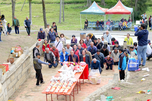 清明祭祖,瓊林蔡氏宗親按往例於每年4月4日前往金防部營區內掃墓祭祖,向五世祖靜山公、前清水師提督蔡攀龍祖墳掃墓致祭。祭祖完畢後,蔡氏族人就地在營區內擺設流水席「吃頭」,見證金門人慎終追遠、感懷古人的心境。 昨日祭禮,蔡氏宗親由輪值頭家準備三牲、菜碗,及酒、香、炮、燭、金紙、四角燈等祭品及墓紙辦理祭禮,眾人在主獻官帶領下祭拜祖墳後,並在當地進行戶外聚餐,閒話家常、聯繫蔡氏宗親情誼。 祭祖完畢後,蔡氏宗親就地在營區內「吃頭」,蔡氏族人表示,早年族人就地食用祭祀祖先後的牲禮、果品,「席地而食」成為金門清明祭祖的一大特色,近幾年改為「辦桌」,大家站著吃,方便走動,聯繫情誼,場面相當壯觀。 蔡氏耆老表示,每年蔡氏祭祖都訂於清明節前一天,也就是兒童節當天,目地是鼓勵蔡氏後輩小朋友能夠一起來掃祖先的墓,至少要知道「祖先的墳墓在哪」,慎終追遠。 當年國民黨軍隊撤退到金門,就地劃地當做營區,許多居民的祖墳都被劃在營區內,以致於如今出現每年清明許多金門鄉親要「進軍方營區掃墓」如此金門特有的奇景;蔡氏祖墳就是其中之一,共有3座祖墳位於金防部總部內,包括蔡氏五世祖蔡靜山、十四世祖蔡安所、二十世祖蔡攀龍,其中蔡攀龍是清朝嘉慶年間福建水師提督,其墳墓更被指定為3級古蹟。 瓊林原名平林,明熹宗天啟年間御賜里名「瓊林」,在明、清兩代人才輩出,計有進士6人、舉人7人、貢生15人、武將6人、國子監生27人、生員80人,為金門最具人文內涵的傳統聚落,其掃墓儀式更可窺見古風流傳。每年清明節,蔡氏宗親總是會齊聚太武山軍事核心地帶的古墓掃墓祭祖。