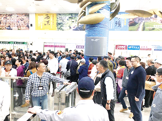 清明節連假前夕,縣長楊鎮浯昨日前往水頭通關大樓實地了解旅客入出境情形,由於適逢周日航班旅客最密集時段,對於旅客通關秩序的掌控縣長頻頻表示關心,也要求觀光處等相關單位要設法改善旅客通關檢驗動線,儘量避免造成鄉親的不便。 昨周日下午,楊鎮浯縣長是在觀光處處長丁健剛、港務處處長何佩舉、車船處處長王垣坤等人陪同下抵水頭通關大樓實地勘查,也針對旅客通關壅塞點逐一釐清,特別是就通關動線狹小、腹地、縱深不足及目前場站通關動線狹小,導致無法引導更多旅客辦理出境查驗問題,他也要求相關單位要檢討改進。 對此,移民署金門服務站指出,出、入境查驗櫃檯增設工程已在發包程序,預計於今年10月完成查驗櫃檯增設,其中出境部分將增設三組自動通關櫃檯,提供非本國籍旅客使用,屆時可大幅提升通關速度,但旅客仍有可能在大量湧入之下再次造成壅塞情形。 楊鎮浯表示,由於兩岸往來便利,辦證簡便,越來越多對岸年輕朋友假日來金旅遊,隨著人數增長,也必須改進出境大廳的壅塞及檢驗的動線,以免造成遊客擁擠,也帶給鄉親不便。 他也特別指示港務處研提出境查驗動線優化方案,並由港務處與車船處共同商討研擬,就優化小三通出境動線問題徹底檢討,在有限空間下最大化提供旅客通關空間,以期改善目前通關壅塞情形。