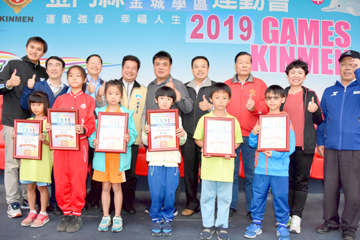 金門縣107學年度金城學區運動會經過一連兩天半的賽事後,昨日下午圓滿落幕,期間共有1,443位選手在149場次賽事中繳出亮麗成績,更有10項20人次破大會紀錄,且多為女生。 金門縣107學年度金城學區運動會自27日下午起在金門縣立田徑場展開,經過為期兩天半的賽程於昨(29)日下午圓滿劃下句點,於下午四時三十分假縣立田徑場閉幕頒獎,縣府社會處長董燊、教育處副處長陳家輝、金城鎮鎮長李誠智、金城鎮代表會主席陳天成、金城國中家長會會長李金譚、城中校友會常務監事周浯斌等貴賓出席,並頒發各組男女田徑錦標前三名及大隊接力前六名,而金城國中校長許維民、中正國小校長蔡雪芳、古城國小校長楊成業、賢庵國小校長楊肅健等金城學區四所學校的校長也都出席參加,肯定學生的優異表現。 107學年度金城學區運動會破大會紀錄分別為:國小三女組60公尺:翁語約(中正國小306)成績9.64秒;國小三女組100公尺:翁語約(中正國小306)成績15.99秒;國小四年級女生400公尺接力:古城國小401(陳嘉臻、許佩瑤、陳瑄誼、陳映璇)成績1分03秒35;賢庵國小401(陳玟安、謝雨岑、陳米樂、李宥萱)成績1分04秒91;國小六男組鉛球蘇士傑(中正國小 602)成績11.98公尺;國中七女組鐵餅:顏琦(金城國中705)成績22.90公尺;國中七女組200公尺:林玟(金城國中706)成績27.51秒、洪睿彤(金城國中710)成績29.99秒、薛琪仙(金城國中704)成績30.03秒;國中七女組400公尺:林玟(金城國中706)成績1分03秒96;國中八女組跳遠:李芷璇(金城國中804)成績4.75公尺、洪毓雯(金城國中802)成績4.66公尺;國中八女組100公尺:李芷璇(金城國中804)成績12.85秒;國中九女組鉛球:許以潔(金城國中907)成績9.89公尺。
