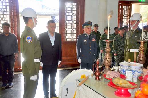 「金門各界春祭革命先烈暨國軍陣公亡將士祭典」昨(29)日在太武山公墓舉行,由金門縣長楊鎮浯及金防部中將指揮官姜振中擔任主祭官。有當年陣亡的金門民防自衛隊員之遺族一起參加祭祀儀式,共有3位家屬參加,家屬們肯定縣府的邀請,認為備受重視。縣長楊鎮浯昨日也與金防部指揮官姜振中商討,研擬立碑紀念民防自衛隊為金門這塊土地的貢獻。 太武山公墓昨日上午舉行「金門各界春祭革命先烈暨國軍陣公亡將士祭典」,縣長楊鎮浯和金防部中將指揮官姜振中擔任主祭官,帶領縣府及金防部文武百官進行祭祀儀式,包括唱國歌、上香、獻花、獻爵、獻饌、獻果、讀祭官讀祭文及行三鞠躬禮,向革命先烈以及入祀太武山忠烈祠之陣公亡將士致敬,感念其為國捐軀、犧牲奉獻,表達永恆的追思,場面隆重莊嚴。 太武山公墓以往每年舉辦公開祭典的時間大約是3月29日、8月23日、9月3日,昨日和以往不同的是,縣府邀請當年砲戰不幸陣亡的金門民防自衛隊員之遺族,一起參加祭祀儀式,昨日共有3位遺族出席,包括當年陣亡的莊春儒,其媳婦蔡翠華;當年陣亡的黃晉泰,其孫女黃小姐;以及當年陣亡的薛扶國,其女兒薛亞敏。 現為金門縣基督教女青年會理事長的薛亞敏說,47年砲戰發生時,自己還很小,有一天砲彈來襲,爸爸薛扶國和村民躲在珠山一個石洞內,因為洞內人很多、很悶,爸爸到洞口外透透氣,沒想到才剛出去,砲彈剛好炸下來,當場把包括爸爸在內的17個村民通通炸死;薛亞敏回憶,爸爸死後12天,妹妹才出生,留下3姊妹,日子不好過。黃小姐的爺爺黃晉泰,則是一群9人躲在防空洞裡,但砲彈落下仍舊無人倖免。後來直到民國90幾年,國防部才同意讓民防自衛隊的陣亡將士也入祀太武山忠烈祠。 薛亞敏說,自己常常台灣金門兩地跑,這次清明前夕回金門掃墓,剛好接到縣府電話邀請參加太武山公祭,覺得十分受重視,認同縣府這個做法。 縣長楊鎮浯和金防部指揮官姜振中昨日也親自向3位家屬們致意,並表示研擬未來會比照823戰史館,在太武山公墓外立碑,紀念民防自衛隊為金門這塊土地的貢獻,以告這些陣亡將士在天之靈。