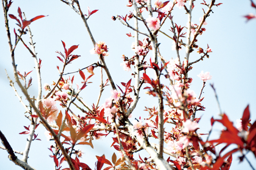 熱熱鬧鬧的春節假期和元宵節已過,時序已進入春分時節,天氣還是不太穩定,時而風和日麗、時而濕冷、時有寒流來襲,但許多植物正綠意萌芽,隨著桃花舞春風,春天的氣息在繁花盛開中散佈。 位處離島的金門,冬天冷風凜冽,許多樹木、花草,就顯得蕭瑟。但隨著桃花盛開,也代表春天的腳步不遠了,天氣再過不久也將回暖,大地回春。 美麗的桃花盛開,也迎來蜜蜂和蝴蝶的穿梭花間飛舞。