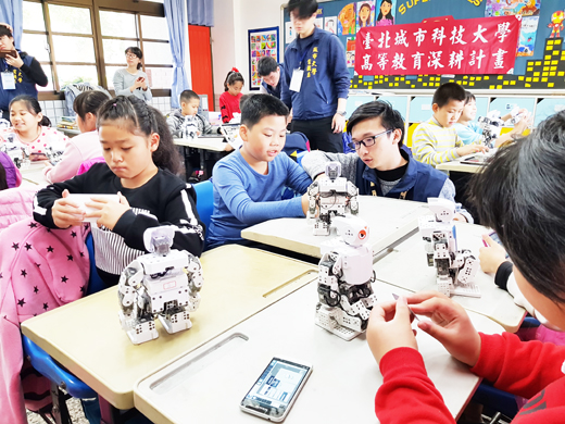 為推展離島學童資訊應用能力,播下機器人科技的種子,臺北城市科技大學機器人團隊再次造訪金門,帶來2014年推出曾獲得紐約時報年度最佳機器人產品ROBOTIS_DARWIN-MINI人型機器人,首站在古寧國小造成不小的轟動,學生相爭躍躍欲試,隨後轉至寧中小進行技藝學程班機電群機器人課程,受到學校師生們的熱烈歡迎。 臺北城市科技大學電機系機器人團隊,本著教育興邦、科技強國的理念為金門學子舉辦「金門縣古寧國小、金寧中小學(國中部)機器人研習營」體驗活動。帶著新一代的人型機器人設備前往金門,教導小朋友自己學習動手操作人型機器人,讓小朋友認識機器人機械結構和利用手機控制與感知器,學習機器人並推廣科技與人文的觀念。 古寧國小三年級學生第一次接觸ROBOTIS_MINI,看到眾多的人型機器人,驚訝聲連連,團團圍觀覺得新奇有趣,經過機器人團隊的細心引導,在短短半天課程中,讓學生發揮自己的想像力,運用手機的程式設計以及圖形化介面的編輯控制器,讓學生能在短時間學會操控人型機器人,並做出多種姿態的變化,例如:前進、後退、步行、倒立、舉重,甚至還可以兩個機器人玩相撲遊戲、比賽後滾翻等等,就像真人一樣,大家從實作中學習,相互討論,樂在其中欲罷不能。因應未來科技教育的重要,也前往金寧中小學為國中部的學子教授加深加廣的機器人深究課程,國中生學習與手機程式結合,迅速上手操作,也為探索技藝學程開展另一扇窗。 安排此次活動的臺北城市科技大學電機系潘同泰副教授,同時也是台灣機器人博物館館長表示,電機系機器人團隊,十餘年來多次派遣人員至金門、馬祖、東引、澎湖推廣機器人教育,2006年第一次到金門,那時台灣來的科學推廣教育團隊比較少,很多人都知道這群台灣來的大學生,而此次是電機系學生第二次到金門,他們很高興參與這樣有意義的科技課程推廣活動。 古寧國小校長黃芸芸表示,這次來金門舉辦「金門縣古寧國小、金寧中小學(國中部)機器人研習營」體驗活動,感謝臺北城市科技大學電機系的機器人大使,搭起離島的孩子認識人型機器人的橋樑,受到學校師生們的支持與肯定。參與的國中、國小學生透過手機圖形化介面編輯控制器實作,自己操控可以行走的人型機器人,不僅啟發學子資訊學習的興趣動機,也播下了機器人科技的種子,同時更開拓了離島孩子的學習視野。