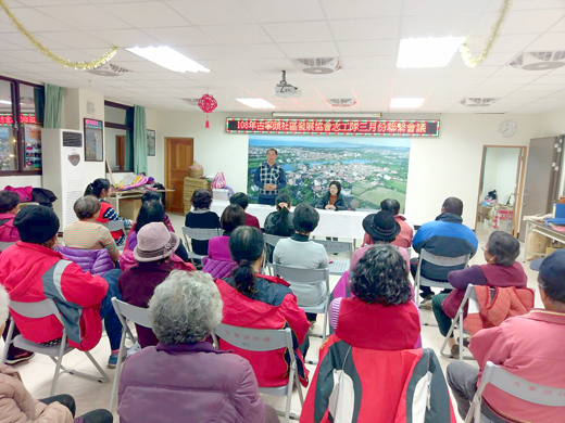 為增進社區志工隊之聯繫與互動,金寧鄉古寧頭社區志工隊昨日召開108年三月份聯繫會議,研討社區關懷據點婚喪喜慶協助事宜、即時諮詢及通報服務及活動計畫撰寫研習等,社區理事長李開陣、志工隊長陳雅蘭感謝志工伙伴為社區犧牲奉獻的付出,也透過聯繫會報的召開傳遞志願服務重要施政方針,期能相互溝通及分享經驗、凝聚志工向心力及發揮團隊精神。 古寧頭社區志工隊昨日晚間在社區活動中心召開108年三月份聯繫會議,會議由社區志工隊長陳雅蘭主持、社區理事長李開陣列席、計有志工三十多人出席,李開陣對於植樹節活動在沙崗安東一營區舉行,會員主動到場參與種樹活動,受到林務所肯定。他感謝志工伙伴為弱勢鄉親無悔的付出,他說,志願性服務需要付出極大的愛心和耐心,女性志工伙伴既要忙於家務又願對這個社會付出真誠的關懷,實在是加倍的可貴與不容易,期望藉此次志工聯繫會議,一起分享、討論及交換意見,以利提升志工管理上的效益。也希望能有更多的志工朋友投入積極的志願性服務,讓社區處處都能看見祥和溫馨。 會中,並由志工隊總幹事就志願服務業務進行報告,指出志工參與志願服務,須先完成基礎及特殊訓練,特殊訓練係目的事業主管機關或志願服務運用單位基於志工提供服務所需而訂定,爰跨領域服務之志工,須接受相關領域之特殊訓練,志工服務時數始合併計算。會中也報告警察局辦理社區治安會報定於本月十九日晚上到社區召開,聽聽居民對於社區治安相關需求建言,鼓勵大家踴躍參加。另本月廿三日在社福館舉辦一項社區活動計畫撰寫研習,會中推選種子人員報名參加,會後心得傳承指導大家撰寫活動計畫。 此外,為宣揚志願服務精神,鼓勵鄉親投入志工行列,年來志工隊也積極配合活動進行擺攤宣導,宣導志願服務理念及提供志願服務諮詢管道,鼓勵村民為熱愛的家鄉和居住的社區奉獻一份心力,共同建設充滿熱情及溫暖氣息的幸福家園。