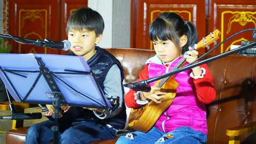 在自造音樂工作室首次舉辦的「自造舞台」年度成果發表音樂會裡,十多組學生以及特邀音樂家們輪番上陣表演,一連串精妙絕倫的吉他與烏克麗麗演奏,讓週日晚間的藝文特區人潮滿滿。 17日晚間,後浦十六藝文特區便響起了陣陣悠揚的旋律,吸引過往民眾與遊客的注意力,「自造舞台」年度成果發表音樂會為一群練習吉他與烏克麗麗多時的學生們打造了這麼一個專屬舞台,讓他們自由揮灑。 這場音樂會,不僅是自造音樂工作室年度學生成果發表,也是工作室成立以來的首次舉行。該工作室希望學生能夠表演增加舞台經驗,未來更能獨當一面,以樂器演奏展現自己。「自造音樂工作室」烏克麗麗老師許翼騰還邀了志同道合的音樂夥伴與學生共演。(分別是來自高雄的烏克麗麗演奏家—雞湯G.J.Lee、來自香港的曾獲第四屆中華盃優異獎的烏克麗麗演奏家Jason王智信以及香港指彈吉他手Wing鄭皓永);透過觀摩優秀音樂人的舞台表現,累積學生音樂能量的養分,把音樂玩得開心又專業。 自造音樂工作室於去年七月開幕,至今已經成立九個月了,工作室的烏克麗麗老師許翼騰表示,工作室成立至今,上課的學生以烏克麗麗跟吉他為主,其中烏克麗麗以學生為主;吉他則以成人居多,因此才想說特別舉辦這樣成果發表。以「自造舞台」為主題,是取意為學生創造一個舞台之意,除了讓學生們有表現的機會外,他還邀請來自高雄與香港的音樂人,希望不只讓學生有發揮空間,也讓他們看見音樂的可能性以及創造性。 許翼騰說,自造音樂工作室本身就有在進行烏克麗麗跟吉他的教學,工作室的老師們也會在外指導學員,過程中也會積極徵求學生表演意願,讓他們有揮灑空間。參與演出的學生,有四組吉他學生以及八位烏克麗麗學員,此外還有金湖幼兒園的烏克麗麗團,加上特邀嘉賓,共有近二十組的表演。 「自造音樂工作室」目前位於後浦十六藝文特區,許翼騰說,工作室團隊也將會持續用教學、製作以及創意的方式推廣「數位音樂」,期許未來能藉由這個空間,讓更多喜愛音樂的人一起交流,成為兩岸三地音樂人造訪金門必到的音樂基地。
