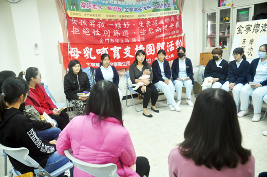 為推廣母乳哺育,金寧衛生所昨日辦理第一場「母乳哺育支持團體活動」,邀請衛生福利部金門醫院陳宜溱護理師指導正確的哺乳技巧,金門大學護理學系四年級學生到場參與臨場實習,期盼透由活動,提供學生最佳場所與學習機會,讓學生們了解推廣母乳哺育的好處,學習正確的哺乳技巧,同時讓準媽媽可以得心應手的哺乳與照顧好我們的優質寶貝。 金寧衛生所於今年度三、四、五、六月將舉辦四場次母乳哺育支持團體活動,第一場次活動於昨日下午二時起在金寧衛生所二樓會議室展開,邀請衛生福利部金門醫院陳宜溱護理師指導正確的哺乳技巧,主題是「指導媽媽如何成功哺餵母乳」,內容包含媽媽於順利哺乳所需要的幫助、哺餵母乳的好處有哪些?如何讓乳水多多。金門大學護理學系四年級學生在護理系老師蘇貞瑛帶領下,配合實習計畫參與臨場實習,許多媽媽到場參與學習哺乳小撇步,深感受益匪淺。實習同學深感實習收穫了實踐經驗、學到了很多技能、開闊了自己的眼界,見習過程中受益良多。 金寧鄉衛生所表示,許多產婦面臨從懷孕至生產身體心理變化調適、新生兒照顧及哺乳經驗和自信心缺乏、擔心奶水不足、不確定感、缺乏諮詢者、家人支持,而影響哺乳成功機率,因此醫療、社會更需要營造一個親善環境,減少產婦過程中的疲憊,適當給予肯定及讚美,鼓勵說出心中感受,採用積極正向態度,增加產婦自信心並提供育嬰照顧知識和技巧,鼓勵家屬一同參與學習過程,減緩焦慮不安。而護理人員是母乳哺餵推廣的最佳代言人,不僅是諮詢者、教育者、協助者、照顧者、也是支持者,在產婦產前、產中、產後適時提供實務及實證資料給予支持、鼓勵、指導,幫助產婦有正確知識和信心,促使產婦能成功哺餵母乳。 金寧鄉衛生所指出,母乳是上天賦予媽咪和寶寶最棒的禮物。近年來行政院衛生署國民健康局大力提倡哺餵母乳,也有越來越多的民間團體加入宣導母乳好處的行列,但妳真的明白母乳對於寶寶的好處究竟是什麼嗎?母乳對於寶寶的好處就在於其中的營養成分,母乳中鈣、磷、鐵等微量元素雖然含量不若配方奶高,但卻有著50%到70%的極高生物利用率,更容易被人體吸收利用。一般來說,配方奶的生物利用率僅約5%左右,奶粉廠商為了增加吸收量所以將營養素成份含量提高,這麼一來反倒加重了食用配方奶的小寶寶身體負擔,所以家長應留意每日的食用份量。 金大護理學系指導老師蘇貞瑛副教授表示,這次安排國立金門大學護理學系四年級的同學至金寧鄉衛生所進行為期15天的「社區衛生護理學實習」,並在金寧鄉衛生所吳國斌主任及社區護理師的協助下,提供學生最佳場所與學習機會,讓學生們走入社區關懷居民,透過家庭訪視、團體衛教、金好康健康檢查、整合性篩檢、巡迴醫療及問卷調查了解居民對社區之看法、需求及個人對於預防疾病的態度等,以作為擬定社區健康評估之參考。