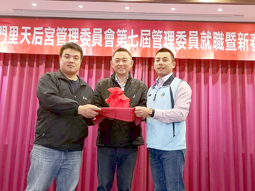 天后宮管理委員會第七屆管理委員就職3日假迎春閣舉行,縣長楊鎮浯到場頒證,勉勵新主委許燕輝承繼前人打下的基礎,辦好會務。 日前的就職活動場地來了許多鄉親,楊鎮浯致詞時表示座無虛席的盛況一來代表著大家對新主委的肯定,二來是大家對天后宮的重視。在歷任主委的經營管理下,基礎已然打好,相信在新主委許燕輝接棒下,會務一定能越來越好。 天后宮管理委員會第七屆管理委員新任人員如下:主任委員許燕輝;常務委員楊耀芸、邱嘉樹、鄭自欽、許績成;管理委員許秋霖、鄭易明、許亞仁、陳水東、許進乾、王建文、唐文宗、許子仲、許丕旺、鄭雪明。常務監事李誠智;監事委員李永全、鄭通祥、張家麒、張盟昇。總幹事陳尚智;副總幹事吳媽泉、鄭易青、王資音、倪振興、阮國彬。總務鄭易岳;副總務許志行、方耀國、莊嘉銘、李瑞崇。出納張國平,會計鄭雪霞。另聘顧問十五人,李錫榮、蔡錦駒、蔡輝詩、張超穠、林海水、鄭清平、葉欽土、黃水泉、許峻岷、許叔林、陳炎煌、陳添富、鄭一全、李榮利、馬志亮,以及推舉鄉老十人,李增壽、黃連鐵、陳世耀、董文倩、許丕林、許永贊、王光森、林馬贊、張長華、張國平。 宮廟事是眾人的事情,許燕輝肯定常委楊耀芸數十年如一日的晨昏向媽祖燒香奉茶,犧牲奉獻的精神是他要學習仿效的。天后宮向來是金門在地居民的重要信仰,今年四月中旬要赴陸大進香,縣長期勉委員會將進香的事辦好。
