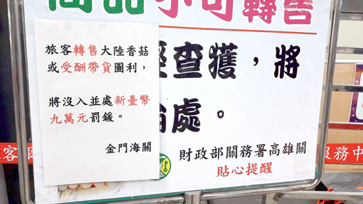 金門與廈門之間,僅有一海之隔,彼此往來交通頻繁方便,許多民眾常往來兩地購物;而再過一個月左右將是清明節,屆時香菇用量將會大增,為此財政部高雄關提醒民眾,利用金門小三通往來的旅客,請勿攜帶超量的香菇入境,被查獲者將會受罰。 往來小三通的旅客都有類似經驗,在兩地出境大廳都會碰到有人詢問是否要幫忙攜帶香菇,願意協助者可以獲得少許走路工費用,因此高雄關離島派出課表示,金門毗鄰中國福建、廈門,兩地之間的交通相當便利,小三通的航班密集,每趟航程僅需要約三十分鐘左右,而根據相關規定,小三通的旅客可以合法攜帶「一公斤大陸香菇」入境。而在四月的清明節之後,端午節也將隨之來到,這些節日都是香菇需求量大增的時候,也是有心人圖利之時。 高雄關離島派出課指出,根據「郵寄或旅客攜帶進入臺灣本島之少量自用大陸地區物品限量表」的相關規定,每個人可以攜帶的香菇重量,不得超過一公斤。而且近三個月以來,金門海關單位也已經查獲旅客經由小三通攜帶超量來自中國大陸的香菇,重量達到八百二十二公斤之多。 不僅是海關單位,在二二八連假時,金門岸巡隊查緝走私也先後於一日及二日在金門料羅商港淺水碼頭實施貨物拆檢查驗的過程中,查獲疑似大陸走私香菇,總計多達六十箱,重量約有七百六十公斤之多。岸巡單位就研判疑似是業者看好清明節市場上對於香菇的需求,而旅客入境可攜帶少量自用大陸農產品(但禁止以包裹郵寄),因此業者疑似透過跑單幫方式攜帶入境,再企圖整批闖關赴台牟利。 海關表示,部分有心人士見到此舉有利可圖,便藉以違法搜集,並囤積轉售牟利,甚至以每趟新臺幣兩百至三百元不等的代價,遊說旅客攜帶大陸香菇入境後,再違法收集,此舉形同變相走私。 因此,海關單位本於職責所在,將會賡續加強查緝,並且於金門水頭碼頭張貼公告,點名警告「旅客轉售大陸香菇或受酬帶貨圖利,將沒入並處新臺幣九萬元罰鍰」的標語,以提醒旅客注意。而高雄關方面針對小三通旅客,將會持續加強邊境查緝,以遏止劣質大陸香菇進入市場,避免危害國人食品安全與健康。