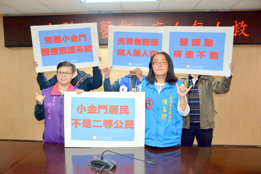 自去年五月份起,烈嶼分院洗腎每周周三有醫師,周一及周五兩天沒有,可能導致病患洗腎過程處於高度曝險的狀態,亦讓護理人員處於危險的職業環境裡。金門縣立法委員補選候選人陳玉珍昨天找來台灣護師工會理事長陳玉鳳召開記者會現身說法,呼籲衛福部金門醫院正視及派足烈嶼分院洗腎專科醫師,更不能使用「通訊診療辦法」。另,金門縣衛生局在農曆年前前往烈嶼分院稽查,並要求金醫限期改善洗腎醫師和照護問題。 這場小金門醫療失衡陳情案暨立委補選候選人陳玉珍醫療政見記者會於昨天上午假縣議會召開舉行,陳玉珍說是抱著沉重心情召開記者會,有小金門民眾和護理師向她陳情有關烈嶼分院洗腎有兩天沒有專科醫師在場照護,病患及護理人員擔心醫療安全問題。 陳玉珍指出,去年五月前,烈嶼分院洗腎都有腎臟專科醫師駐診照護,質疑以前可以派洗腎專科醫師,現在也應可以派。她表示召開記者會旨在呼籲衛福部金門醫院重視離島中離島的烈嶼洗腎病友權益,能有專科醫師在場,一是醫療法規規定的;二是病友反映院方要求簽署「通訊診療」,她認為是不可取的醫療方式,從去年五月反映至今,病友家屬覺得等太久了,已無法繼續等待,更不希望有發生不良後果的情事。 台灣護師工會理事長陳玉鳳表示,今天會來金門,主要是有會員在金門服務,並代表會員站出來,呼籲金門醫院重視烈嶼分院洗腎病人及護理人員安全。同時,她直言金門醫院最近用「通訊診療」方式,罔顧病人的生命安全,依照現行醫院與診所從事血液透析業務評估要點,只要血液透析就需醫師在場,質疑「通訊診療辦法」不適用於洗腎及要病人簽署同意書,覺得嚴重剝奪病人應被照護的權益。所以,她呼籲衛福部勿同意這種省略的醫療方式,更呼籲金門醫院要經衛生主管機關同意之後才能夠做,不能讓離島居民成為二等公民,是沒有辦法接受這種情況。 金門縣衛生局局長王漢志說,就醫療法來看有疏失沒違法,還是應該考慮到合理性;若放寬解釋,洗腎時有醫師在,但沒專科醫師,以中央法規來看,是不太符合法令的精神。衛生局在過年前就有去稽查,並要求限期改善,應該會從四月開始就會從北榮調派醫師來支援。王漢志也說,有要求烈嶼分院改善,但沒給期限,因為一旦開罰,那邊就要關起來,所以只能走在灰色地帶,不然那些高齡的洗腎病患該怎麼辦?至於要求病患簽署「通訊診療」同意書,王漢志說,這辦法是為了醫療重症的緊急會診而存在,在法規上有點模糊,緊急會診法律上同意,至於是否適用洗腎,則走模糊地帶。 另,金門醫院副院長李錫鑫受訪則表示,「通訊診療辦法」是法規,山地離島偏鄉地區可用通訊方式詢問病情診療及開處方,有依法的;而且,金醫為謹慎起見有跟衛福部請示,再一次對法條做說明,亦跟內部員工做說明。至於烈嶼分院腎臟專科醫師不足問題,李錫鑫說洗腎要有洗腎專科醫師資格,能夠親自診療最好,沒有辦法就使用通訊診療,都是合法範圍。另,金門衛生局要求改善,李錫鑫表示有就改善,再提出改善計畫。 目前,烈嶼分院洗腎有十二床,仍不符合需求,陳玉珍表示它的治本方法是派醫師到烈嶼分院,呼籲金門醫院正視此一問題。另,陳玉珍強調現在從事醫療風險很高,醫護人員會擔心醫療風險責任,如此願意到離島偏鄉的醫護人員會更低。 此外,距離金門縣立法委員補選三月十六日投票日越來越近,選情日益白熱化及競爭。陳玉珍亦在記者會發表參選立法委員醫療政見,她表示在從事選民服務這麼多年,醫療一直是金門鄉親的痛,最近忙於參選也一直處理選民醫療服務,對於金門醫療部份提出十二點政見,主要的有:金門人到台灣就醫有優先掛號權益、重急症家屬免費住宿、定時定期提供免費民眾醫療諮詢、加速沖抵公費醫師服務年限提高來金服務意願、申請金門地區成為國際醫療專區等等,希望透過國會這個平台能嘉惠所有的金門鄉親,以最有效率的方式改善金門的醫療環境,從而解決結構性問題。