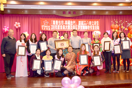 金門縣新住民互助協會昨日舉辦慶祝三八婦女節暨會員大會及理監事就職聯誼餐會,縣府社會處長董燊代表縣長楊鎮浯頒發理事長當選證書及祝賀牌匾給首任理事長覃惠暄,縣議會副議長周子傑以父親名義捐贈二萬元予該會,金寧鄉代表會主席莊振源也捐贈五萬元,多位參與立委補選的候選人也到場向新住民婦女姊妹賀節,現場也安排歌舞表演,新住民姊妹歡聚一堂,載歌載舞,氣氛相當熱絡溫馨。 金門縣新住民互助協會慶祝三八婦女節暨會員大會及理監事就職聯誼餐會昨日中午十二時許在盈春閣餐廳舉行,縣議會副議長周子傑、縣府社會處董燊處長、金寧鄉代表會主席莊振源、社會處科長董燕輝,以及縣議會前議長洪麗萍、前議員陳玉珍、前金湖鎮長蔡西湖、金門高粱黨主席洪志恒、前議員陳滄江等多位立委補選候選人也到場向理事長覃惠暄與新住民婦女姊妹祝賀,現場氣氛相當熱絡。 副議長周子傑也當場以父親名義捐二萬元給協會表達關懷心意,他說,他爸爸是浙江省人,來金門比大家早,他受到新住民朋友的支持與信賴,不管擔任什麼職務都是責任的開始,希望協會成立後是一個很好的交流平台,有什麼問題也可透過協會及議會與他的辦公室組成一個解決問題、找到方法的服務窗口,以後有困難可以撥打他的電話找他協助。 董燊代表縣長楊鎮浯頒發當選證書及賀匾給首任理事長覃惠暄,隨後由覃惠暄頒發證書給該會各理監事及會務幹部。 董燊致詞時指出,開場的熱舞,看到新移民姊妹的活力,也代表縣長楊鎮浯熱烈歡迎大家加入金門這個大家庭,也祝大家婦女節快樂,新的一年諸事順遂、家庭幸福美滿。 他也指出,依據縣府的統計,目前金門地區新住民好朋友有二、三千位,八成來自中國大陸,其他國家約有二成,金門地區大概每十五戶就有新住民朋友,因此,縣府社會處也特別成立新住民的服務中心為新住民朋友服務,希望協助新住民解決問題,儘速融入金門這個大家庭,共創社會和諧發展。 莊振源也捐了五萬元作為該會的發展基金,他致詞指出,金門因為新住民的加入,社會多元化產生新的活力,協會成立後大家更有向心力,彼此間互相關懷幫忙,在金門大家一定可以體會到金門溫暖的一面,由於大家投入與付出,家庭生活更美滿、幸福,讓金門這個大家庭更和諧。 覃惠暄感謝周子傑副議長、董燊處長、莊振源主席等貴賓蒞臨參與,她指出,協會成員有來自內地各省分,東南亞的越南、印尼、新加坡、緬甸等地區與國家,大家千里迢迢來到金門,為金門養育下一代,多年來慢慢融入在地生活,過程中有甘有苦,不論是語言、文化、風俗、生活習慣都要慢慢去適應,正因為如此,所以成立新住民互助協會,希望藉由先來的姊妹們來協助後到的姊妹儘快適應本地生活、語言及文化。 她也提到,到場的近二百位新移民姊妹中,約有七成從未參與社團活動,很高興這些姊妹們願意出來參加,更希望今後大家帶領更多的姊妹來參與活動,也期盼未來透過政府的協助建立一個在就業、就學、就醫、語言學習的平台,能幫助姊妹們充實自我、提高就業機會,如此一來,不僅可以幫助改善家庭經濟狀況,也可以教導孩子的課業。 覃惠暄說,新移民姊妹們離開自己家鄉來到金門,已經把這裡當作第二故鄉,也希望金門鄉親把她們當作金門人,因為她們的孩子都是金門人。 昨日參與活動中有些新移民也穿著母國服裝,增豔不少,活動中也穿插了表演節目,新移民姊妹們以舞蹈展現才藝,為會場帶來熱鬧氣氛。在餐敘聯誼中大家也相互交流,氣氛相當融洽。 金門縣新住民互助協會第一屆理事長:覃惠暄。常務理事:王豔萍、董仁英。常務監事:沈惠貞。理事:張曉燕、楊愛梅、鄭氏僑螢、陳勇智、李麗美、劉巧。監事:林鴻琴、謝羽慈。總幹事張珊珊。出納周芹。會計袁玉峰。 同時也聘任周子傑、陳玉珍、許燕輝、王國才、莊振源、蔡西湖、莊勝騏等人為該會顧問。