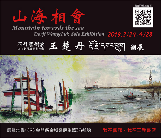海拔一千多米的內陸王國不丹和海島的金門,將迸出怎樣的火花?來自不丹的藝術家王楚丹將其作為駐縣藝術家期間的體驗,化為一幅幅的畫作,用其獨特的處世哲學詮釋畫作。自即日起至四月廿八日止,「山海相會」假我在二手書店(金城鎮民生路27巷1號)的藝廊展出。 1980年出生於不丹孟加爾市的王楚丹,自學藝術,從小生長於喜瑪拉雅山下的佛國不丹,虔誠的佛教信仰培養出他獨特的處世哲學:「佛學即哲學、哲學即藝術、藝術即生活!」有別於傳統宗教藝術,他的作品多以油彩、丙烯顏料和複合媒材創作,探討著自然元素與心靈之間的對話,藉由畫作傳遞不丹文化和傳播善知識的淨心力量。 2010年起陸續於歐洲、亞洲等十餘國參展,作品獲聯合國教科文組織巴黎總部、南亞聯盟和多國藏家典藏;2012年首度來台灣台南舉辦個展,2017年在台北的台灣藝術博覽會、台中的文創藝術博覽會、高雄的漾藝博等個展展出。目前為專職藝術創作,透過到各地的藝術駐村計畫,讓自己與當地做連結,找尋創作靈感和藝術的無限可能。 王楚丹在2018年獲選金門文化局駐縣藝術家,駐縣期間以金門在地素材做媒介,帶上柴刀找尋可砍伐的構樹枝、剝樹皮手工造紙,西園鹽場的海鹽、金門酒廠的高粱都成了他耐人尋味的藝術創作。 比鄰著民居的豬舍、田野間焚燒刈除雜草白茫茫的煙,王楚丹的作品裡呈現出金門農村生活的畫面,質樸的景色一如他的家鄉不丹。用油畫、水彩將所看到的景色繪在紙張、布幅上,用高粱酒代替水調和顏料,揮灑繽紛的色彩。故鄉的天馬旗、金門的風獅爺、海濱的景色是其走遍各地的紀錄;懷著想踏上去瞧瞧的念想,一水之隔的廈門也被畫進作品裡。放在展覽現場的幸福郵筒,將為觀展的民眾從不丹傳遞來自三千餘公里外的祝福。
