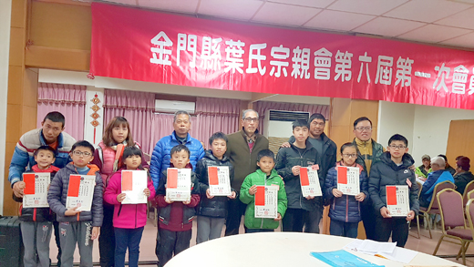金門縣葉氏宗親會日昨召開第六屆第一次會員大會,會中除頒發107年度葉氏宗親會獎學金,同時進行改選理監事及新任理事長,票選結果由葉天仁高票連任理事長一職,葉天仁感謝宗親們的支持與努力,讓各項會務穩定成長,他也期望未來持續結合宗親的力量,致力推動宗親會會務,持續結合宗親的力量,加強與台省及大陸宗親會的聯誼交流,發揚祖德,造福宗親。 為獎勵金門地區葉氏子弟勤奮向學,努力進取,金門縣葉氏宗親會辦理107學年度獎學金申請,經審委會審核通過,計有葉函等二十人獲獎,日昨假金城鎮國慶飯店召開葉氏宗親會第六屆第一次會員大會,並由葉氏宗親會理事長葉天仁頒發獎學金表揚獲獎同學,藉以鼓勵學子繼續努力向學,教育子孫應飲水思源,不忘崇祖敬宗的傳統美德。 會員大會由理事長葉天仁主持,會議由總幹事葉長雯報告年度重大會務的工作成果,並進行審查107年度經費收支決算案、108年度經費收支預算案及工作計劃案等,同時頒發金門縣葉氏宗親會獎助學金。 葉天仁頒發獲得獎學金學子名單如下,大學組:葉函、葉書彣、葉美蘭、葉沂涵等四人各得新台幣三仟元整。高中職組:葉勁、葉芷茜等二人各得新台幣一仟元整。國中組:葉頤萱一人得新台幣八佰元整。國小組:葉千銳、葉枰彰、葉枰良、葉靖怡、葉千瑜、葉宥均、葉子安、葉又綸、葉文德、葉忠育、葉涵靜、葉玲綾、葉又禎等十三人各得新台幣五佰元整。 會中重頭戲是進行第六屆理事長及理監事的改選,依「人民團體選舉罷免辦法」第七條第三款規定暨該會選舉辦法,採提名候選人名單,在公平、公開的選舉下,票選結果當場出爐,理事長由葉天仁(連任第六屆理事長)。常務理事:葉鈞培、葉啊皂、葉在江、葉安在。理事:葉欽土、葉長藩(大)、葉劍行、葉長德、葉福和、葉景清、葉景註、葉立志、葉志漢、葉松義。常務監事:葉維誠。監事:葉松青、葉志淼、葉禮義。候補理事:葉志隆、葉錦湖、葉聰彬。候補監事:葉溪水。聘任會務人幹部名單如下:永久名譽理事長:葉能頭、名譽理事長:葉長茂、總 幹 事:葉長雯、副總幹事:葉和樂、會計:葉長藩(小),出納:葉其藩。 會議結束後即舉行聯誼餐會,縣長楊鎮浯、社會處副處長李文堆、金城鎮長李誠智到場拜年致意,並與葉氏宗親齊聚把酒言歡,聯絡情誼。