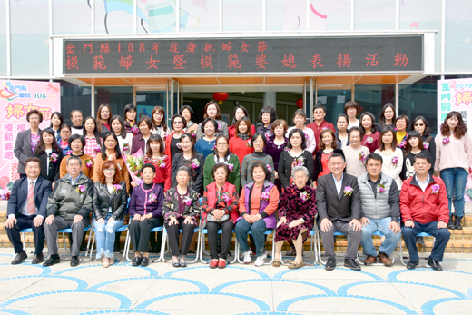 縣府昨日在金門縣社會福利館隆重舉行「金門縣108年度模範婦女、模範婆媳表揚大會暨慶祝活動」,縣長楊鎮浯頒獎表揚5對模範婆媳暨35位模範婦女,現場洋溢著溫馨、和樂與幸福的氛圍。楊鎮浯肯定模範婆媳、模範婦女對於家庭的付出、對社會的貢獻,並祝福全縣婦女朋友佳節快樂!心想事成! 婦女節表揚活動暨聯誼餐會活動,於昨天上午十時卅分起在社福館展開,由縣長楊鎮浯主持,議員王秀玉、縣府社會處長董燊、地政局長葉媚媚、金城鎮長李誠智、烈嶼鄉長洪若珊、金沙鎮鎮長吳有家、金寧鄉長楊忠俊、金湖鎮長陳文顧、金城代表會主席陳天成、烈嶼鄉代表會主席方駿洋、金防部政戰副主任王泓堅等貴賓到場參加及祝賀,也邀請了模範婆媳與模範婦女的家屬參與。 活動由金鼎國小扯鈴表演揭開序幕,專程趕回金門主持表揚大會的縣長楊鎮浯致詞時指出,能參加婦女節表揚大會他非常感動,恭喜所有獲得表揚的模範婆媳與模範婦女,但這個表揚是政府能夠做的一小部分,真正是要表達內心對於婦女同胞對這塊土地、對每一個人所做貢獻的敬意。 楊鎮浯也以金鼎國小小朋友精彩的扯鈴開場表演為例指出,因為每一個優秀小朋友的背後,都是有非常辛苦的媽媽,照顧教育他們,所以婦女同胞不只撐起半邊天,同時還讓小朋友有很好的發展環境,首先要感謝每一位婦女同胞對家庭、對社會的貢獻。 他也表示,大家都曉得,不管是在哪地方,婦女同胞所佔人口比例將近該地區的一半,金門也不例外,女性同胞約佔總人口的一半,要如何讓地區婦女同胞不管是在家庭、在職場,都有一個好的照顧,好的保障、好的發揮,這都是縣府應該要盡的責任,縣府過去也一直很注重這塊,在兩性平權方面已經很努力,但還得做得更好。當然這也與地區的特性有關係,縣府接續會在兩性平權部分讓地區女性同胞在平權部分看得見縣府的努力,儘管目前已有婦女服務中心,新住民的單一服務窗口,還有許多針對婦女同胞在生育、在職場、在婦權各方面的保障,但是這還不夠,還有很多要努力的地方。 楊鎮浯說,金門從過去封閉社會走過來,覺得好像女性好像很受到重視了、女性出頭天了,但這與真正的兩性平權還有一段路要走,縣府在兩性平權會繼續努力、全力來做,希望透過婦女朋友的參與,讓社會更多元、更溫馨,因為女性同胞又細膩、又有愛心、耐心,能讓金門的社會走得更好,婦女同胞積極投入社會各項活動所需要各方面的資源,縣府一定會全力來配合。在婦女權益、兩性平權方面,縣府一定繼續往前走。 他也說,表揚模範婆媳與模範婦女,這也彰顯了傳統價值中最珍貴的一塊,模範婆媳代表的是傳統價值觀的典範,沒有好的家庭、沒有好的婆媳關係,不可能孕育出好的下一代;沒有好的婦女,就沒有穩定的社會。除了恭喜所有受獎人,也誠摯的祝福地區每一位婦女同胞都是模範婦女,每一對婆媳都是模範婆媳。 縣長楊鎮浯也祝福全縣婦女朋友佳節快樂、身體健康、心想事成! 議員王秀玉也是金門縣婦女會理事長,她指出,這是一個姊妹值得慶祝的好日子,特別要獻上誠摯的祝福,也感謝對於家庭、社會的付出,婦女節前夕,也祝福所有婦女姊妹們身體健康、家庭和樂幸福。 縣長楊鎮浯表揚今年度模範婦女、模範婆媳,家屬也上台獻花一起分享喜悅,到場的各鄉鎮長、主席等貴賓也上台一起合照,場面相當溫馨。 金門縣108年度模範婆媳分別為│金城鎮:楊西輝、張秀敏。金湖鎮:陳含戀、蘇秀珠。金沙鎮:陳圭、黃美玉。金寧鄉:許楊速珍、許王淑珠。烈嶼鄉:蔡耳、蔡氏乃。 模範婦女分別為│金城鎮:翁秀英、黃向燕、顏亞妹、何寶珍、蔡愛治、吳庭儀、李佩芬、張念欣。金湖鎮:鄭麗卿、吳芬芳、陳呂淑女、李綵薰、劉秀華、黃鄭碧、吳小萍、黃郁樺。金沙鎮:王金燕、黃雅玲、李淑芬、陳洪、黃皖婷、龔莉娟、李欣曄、鄭金雲。金寧鄉:黃美淑、張明月、許玉英、徐秀英、黃昱蓁、吳愛華。烈嶼鄉:林淑貞、蔡淑媛、陳菁翠、陳佩貞、洪一玉。 昨日活動中並邀請本縣婦女團體及學校到會場表演,使表揚活動更加精彩,在表揚活動結束後接續展開聯誼餐會,現場氣氛相當熱絡。