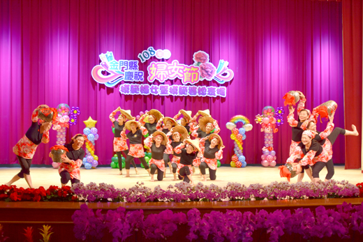 縣府昨日在社福館表演廳舉辦的婦女節慶祝表揚活動中,現場並安排有金鼎國小的扯鈴表演,以及本縣婦女會的「高粱美酒慶豐年」舞曲、婦女聯合會的土風舞等精彩表演,載歌載舞,為活動帶至熱鬧氣氛,也展現婦女朋友多才多藝的一面。 昨日上午的模範婆媳、模範婦女表揚大會的表演活動中,由金鼎國小扯鈴表演開場,這一群可愛活潑的「動感小金鈴」,隨著音樂舞動揚鈴,帶領大家一起進入舞鈴,超越想像的舞台世界。 金鼎國小推展扯鈴活動,是金門縣學校中唯一有扯鈴的社團,迄今已超過三十年的歷史,累積紮實的扯鈴技巧,並融入舞蹈元素,以特色突破發展,創新扯鈴技藝傳承,成就扯鈴特色的風格,由於表演技術精湛,常受邀在縣內或島外表演,近年更跨海越遠征台灣,屢次獲得個人和團體賽優勝成績。 昨日小朋友表演了包括:金雞上架、螞蟻上樹、平沙落雁、金蟬脫殼、大鵬展翅、直上青雲、金雞飛渡、仰觀星斗、金龍繞玉柱、離心運轉、二仙傳道等招式,千變萬化、巧妙不同,為活動帶來熱情活潑的滿滿祝福,獲得現場觀眾熱烈掌聲喝采。 金門的高粱酒濃烈香醇、遠近馳名,已成為國際名酒,為金門帶來了豐厚的財源,昨日活動中金門縣婦女會也特別將以「高粱美酒慶豐年」為題的舞蹈搬上舞台和大家共賞,婦女姊妹們將平日排練的成果展現,把金門高粱酒帶來了豐衣足食繁榮的景象精心排入舞曲呈獻給大家,為活動帶來豐收歡慶的熱鬧氣氛。 另外,婦女聯合會的社區媽媽利用閒暇時間參與社區的運動,除了健身,也融入社區的各項慶典活動,昨日她們也以「最美、最美」土風舞演出,將優美的舞曲搭配輕快吉魯巴,融合了恰恰的舞步,迸出美麗的花朵,表現出婦女姊妹健康與美的行動。 昨日在表揚活動告一段落後,中午縣府也安排在社福館地下一樓餐廳舉行聯誼餐會,款待參與的模範婆媳與模範婦女及其家屬,縣長楊鎮浯與社會處長董燊及到場的貴賓也逐桌敬酒致意,向大家道賀。 而社會處也貼心的為每一位得獎者製作溫馨感人的VCR影片,並在用餐的時候,於在現場播放,讓受獎者與家屬感到相當貼心,活動倍增歡喜溫馨氣氛。