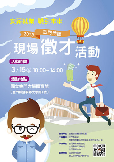 因應新春年後轉職及廠商人力需求,並結合應屆畢業生與屆退官兵求職需求,由金門縣政府、金門縣榮民服務處及勞動部金門就業中心共同舉辦之「2019安薪就業‧職引未來」金門地區現場徵才活動,將於3月15日(五)上午10點至下午2點,假國立金門大學體育館(金寧鄉大學路1號)盛大舉行。此次包括金門及台灣地區共計廿三家廠商提供超過二百個工作機會,歡迎求職民眾,積極為自己尋找適合的工作舞台。 活動當天除寶雅國際股份有限公司、臻霖實業股份有限公司、遠東航空公司、金豐租車行、王大夫一條根有限公司、昇恆昌股份有限公司、聖祖股份有限公司、良金實業有限公司、爭鮮股份有限公司、囍莊企業股份有限公司、京前健康國際有限公司、有限責任金門縣第一照顧服務勞動合作社、家福股份有限公司金門分公司、綺麗珊瑚有限公司、金合利實業有限公司、真毅營造有限公司金門辦事處……等廠商聯合參與,提供照顧服務員、儲備幹部、作業員、免稅店營業員、飯店工作人員、餐廳工作人員、特產店從業人員、建築營造人員、司機、廚房人員、烘焙人員、房務員、工讀生……等超過二百個工作機會,當日求職鄉親還有機會可以獲得廠商提供的大獎唷,歡迎鄉親踴躍參加。 活動當日特邀勞保局金門辦事處提供勞保試算服務,同時由視覺系美學概念沙龍免費提供義剪、思薇雅新娘秘書、JOJO美睫整體彩妝造型提供求職者彩妝服務與示範教學、寶貝園地提供活動現場臨時托育,讓有需求的求職者安心面試及現場諮詢等服務。而現場參與求職民眾也可獲得精美小禮品,數量有限,歡迎大家共襄盛舉。 金門就業中心主任黃雨舜表示,這是地區春節年後首場徵才活動,現場徵才活動是讓待業勞工儘速進入職場最直接有效的媒合方式,也是協助廠商迅速解決缺工問題、覓得合適人才的捷徑,求職者更可一次與多家廠商面談,增加錄取率,希望透過徵才活動的媒合,讓廠商找到適合的人才,讓求職者找到理想的工作。 為了節省填寫履歷及等候的時間,鄉親可先至台灣就業通網站https://www.taiwanjobs.gov.tw、勞動力發展署北基宜花金馬分署網站(https://reurl.cc/012xx),下載表格填妥後於活動當天攜帶至現場報名參加面試(若欲應徵數家廠商,請自行列印數份)。請鄉親掌握這次的就業良機,踴躍參加;相關事宜洽詢專線:082-311119,金門就業中心竭誠為您服務。