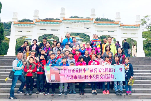 正義國小近期獲教育部補助偏鄉學校學子赴台參訪,校方安排拜訪去年曾經到金門交流過的台北市健康國小,兩校學生再度在台北相見歡,互相交換禮物、一起上課。正義國小校長許瑞芬表示,正義國小強調戶外教育的重要,以讓學生「體驗」為核心,以學習者為中心,注重學習過程中的個人體驗及參與。 藉著到台北參觀故宮的機會,難得離開金門到台北,正義國小安排與台北市松山區健康國小進行校際交流,受到健康國小校長陳素蘭、陳麗羡組長和小朋友熱烈歡迎,進行相見歡活動,兩校互相交換禮物,小朋友也與學伴作第一次近距離接觸,然後學生一組一組合照後即帶去教室開始上課。 健康國小校長陳素蘭親自接待師長們作校園巡禮,也去小朋友上課的教室看,這是一所無圍牆設計之「開放式」學校,也是台北市第一所採「班群組織」教學的學校,班群係指一大間教室分割成數個較小教室和一片公共的班群空間,每個教室為1個班。目前健康國小採3個班為一班群,班群空間則設有電腦區、視聽區、圖書區等,是一所真正屬於孩子們快樂學習的開放型學校,也是能融入社區,開放資源共享的社區學校。 正義國小校長許瑞芬說,因為去年5月18日健康國小也來正義國小作客,正義國小推出社會領域特色課程:成功海灘挖花蛤、成功民防坑道、金湯公園和陳景蘭洋樓巡禮,兩校四年級小朋友用直笛共吹一首「望春風」,並由她指揮與管樂小朋友合奏「火戰車」,印象都非常深刻,由於健康國小每個年段有六班,正義的小朋友分散在各班上課,每個都有不同的體驗和感想。 正義國小學生李詠祺說,覺得和健康國小交流很棒,可以讓我們知道別的學校怎麼上課的,也可以認識更多人。王九毅同學說,健康國小的教室採開放式的空間,他們的社團種類非常多樣化,圖書館佈置得很有特色,許多地方都充滿藝術氣息。 許瑞芬表示,所謂「讀萬卷書,不如行萬里路」,知識的學習不再只侷限於教室中,踏出校園以戶外作為學習場所,透過教師教學計畫的設計與規劃,讓學生運用所知所學去體驗學習,以達成教育的目標。正義國小強調戶外教育的重要,以讓學生「體驗」為核心,以學習者為中心,注重學習過程中的個人體驗及參與,強調學習過程的情境性,學生學習的參與性,通過親身體驗的學習方式來與自我、他人、社會、自然環境與乃至宇宙世界不斷互動及對話學習、成長與反思。