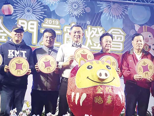 2019金門元宵燈會,昨日晚間六時三十分,在縣長楊鎮浯、議長洪允典、金城鎮長李誠智、金城鎮代會主席陳天成等人及縣府團隊共同點燈下,可愛動態的「富足天豬」花燈,在光雕與煙霧中正式展開元宵節七天的燈會。 金門元宵燈會展期自2月19日起至25日止共7天,開幕晚會於昨日晚上6時30分正式開始,下午5時30分於總兵署前廣場發贈豬年手提燈乙個,等待拿取花燈的隊伍從模範街排到總兵署;晚會活動安排精彩節目,邀請果凍姐姐帶動唱,熟悉的妖怪手錶舞蹈讓親子一起跳動同樂,以及高宇蓁、謝金晶等知名藝人獻唱,與有獎徵答送福袋活動,總兵署旁還有美食攤位。另外在北鎮廟前廣場由家扶中心舉辦義剪和猜燈謎,民眾踴躍共襄盛舉。 依照往例,金門元宵燈會主展場在金門鎮總兵署,今年主題燈「富足天豬」以飛天萌豬為概念發想,設計「喜迎金豬乘夢飛翔」的創意動態花燈,結合光雕與煙霧展演,藉著天豬舞動的翅膀與頭部左右微動,吸引民眾前往觀賞,並拍照打卡,民眾也迫不及待地就在總兵署前廣場周圍將剛拿到的手提花燈組裝起來。 縣長在啟動主燈後隨即在中正國小的鼓吹隊及財神爺、舞龍的領頭下,在金城街區繞街,一路發送花燈提燈,行經廟宇就進廟焚香祝禱並獻上爐敬金。在主展場總兵署之外,文化局也在其他景點設置了不同燈組,如北門北鎮廟前廣場規劃設置2019愛你恆久的豬福永遠燈組、南門天后宮的順金來(獺)燈組、城隍廟的吊嘎豬Line貼圖花燈組、西門外武廟設置豬報平安花燈組。 文化局今年特別規劃以「金豬報喜鬧元宵」為主題,營造年節歡樂氣氛,為遊客提供了一個春節踏青出遊的好去處,「白天樂遊金門,晚上賞花燈」,藉著主題花燈動態展演、以及元宵晚會、猜燈謎、花燈競賽等系列活動,讓金門元宵燈會增添魅力與精彩可期,連續三天的活動盛大慶祝元宵節。20日是深受民眾青睞的猜燈謎大FUN送,提供iPAD等大獎,獎品豐富;21日為花燈競賽與兩岸燈謎創作賽頒獎典禮以及紙上燈謎抽獎活動,與您一起熱鬧迎豬年。