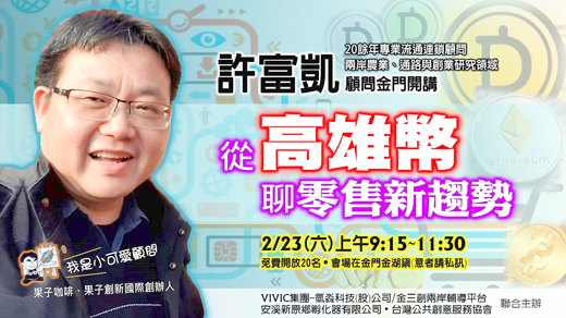 由VIVIC集團氫淼科技股份有限公司與金門縣三門新創發展協會聯合主辦的「卓越領航、決勝千里」系列講座,將於本月23日(星期六)上午9時15分假該公司金湖鎮辦公室舉辦,首場邀請台北果子創新國際公司創辦人、擁有20餘年專業流通連鎖顧問經驗的許富凱顧問分享「從高雄幣聊零售新趨勢」;名額有限,歡迎有興趣的鄉親賜電(082)335409預約洽詢。 三門新創協會理事長、同時身兼VIVIC集團氫淼科技公司資深顧問翁朝安表示,面對全球大數據熱潮,過去消費模式的創新體驗已朝向結合數據應用、虛實整合的新零售趨勢發展,如何導入數據概念、掌握商業脈動,以創新的企業型態開創源源不絕的流量,找到新的策略與競爭力呢?高雄幣的啟用,將使消費者與觀光客真正有感,這是台灣數位金融產業向前邁進的一大步,假以時日高雄幣若能導入區塊鏈技術,更將帶領我們看見網路數據時代與零售新契機。 主辦單位VIVIC集團董事長黃文啟表示,本場活動係VIVIC集團與金門大學育成中心簽署產學合作後的暖身活動,同時也透過三門新創發展協會的策盟合作,期待三月份進駐金大育成中心(位於金沙鎮文化園區)展開更密集的兩岸新創培力及金大學生建教實訓活動。 翁朝安指出,VIVIC集團在金大育成中心的空間不只是產學辦公室,更將延續「金三創兩岸新創輔導平台」的功能,積極整合該會已串聯之兩岸組織及企業資源,透過系列沙龍講座、交流研討及顧問諮詢輔導,逐步扶植兩岸的新創企業,引導台灣(返鄉)青年與廈泉漳就業創業機構及鄉村振興營造基地對接,讓大陸青年企業家學習台灣的商業經營,進而增加金門的青年學子跨域參與更多的兩岸企業實訓及市場歷練機會。