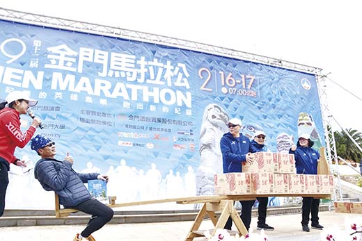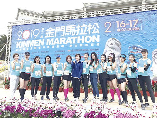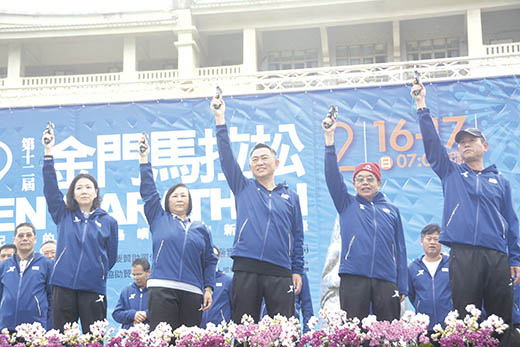 2019年金門馬拉松,昨日上午在寒風中登場,首日由健康休閒5公里組率先開跑,從各地湧進成千上萬的人潮,十足的人氣,場面熱滾滾。金門縣長楊鎮浯致詞表示,金門馬拉松活動,成功帶動金門運動氛圍;加上各鄉鎮的村跑,已跑出金門的特色,成為金門指標性活動,從金門馬拉松越辦越好的情況看來,他有信心金門發展一定會更好。 受到眾多跑者熱愛的金門馬拉松,昨日在國立金門大學登場,由健康休閒5公里組率先開跑,大會於上午7點現場發放號碼布及限量紀念衫。據工作人員表示,清晨4點多,就有不少人頂著寒風到場排隊,到了六點多,各地民眾扶老攜幼湧進入口處,整個排隊的隊伍從金大延伸到環島北路路口,7點鐘,更是綿延數公里之遠。除了金門本地民眾蜂擁到場參加,第二天全程42公里、半程21公里和路跑組11.2公里競賽的選手和家人、以及來金旅遊的遊客、陸客也把握難得的機會,起了大早到現場排隊,共襄盛舉。今年參加首日健康休閒5公里組超過11200名的人潮,擠滿了現場,場面相當熱烈。大家充滿朝氣與活力,親切的臉龐寫著金門人的熱情與活力。 縣長楊鎮浯、行政院金馬聯合服務中心執行長翁明志、金門體育會理事長唐麗輝、議員石永城、議會秘書長甯國平、金寧鄉長楊忠俊、金城鎮長李誠智、日本岩手縣縣南振興局經營企劃部長鈴木一史、經營企劃部主查中機純子、花卷市馬拉松事務局局長佐藤隆治、中華民國體育總會監事許換生、金酒公司董事長李增財、特步集團總監吳麗欣、路跑協會理事長范姜瑞、金寧鄉代表會主席莊振源、縣府參議許寬、翁自保、呂清富、翁正義、縣府財政處長孫國智、教育處長羅德水、副處長陳家輝、觀光處長丁健剛、工務處長許鴻志、社會處長董燊、人事處長蔡流冰、政風處長陳治平、金門縣警察局局長劉耀欽、金門縣環境保護局長楊建立、金門國家公園管理處副處長蘇承基以及贊助廠商代表到場參加。 縣長楊鎮浯分享大家興奮的心情,他致詞表示,金門馬拉松系列活動,在大家支持、協助和參與下,已經辦的愈來愈精彩,愈來愈有特色。金門馬拉松受到鄉親和專業跑者的支持,參與度非常高,從開始的辛苦艱難,到現在報名幾乎被秒殺,成功帶動金門運動氛圍;加上各鄉鎮的村跑,已跑出金門的特色,成為金門指標性活動,更是愛跑者翹首期待的馬拉松。 楊鎮浯感謝各單位十二年投入的努力,廠商的支持,讓金門馬拉松活動愈辦愈好。楊鎮浯表示,籌辦馬拉松的過程需要大家的投入與各界支持和廠商的協作,金門的發展也是如此,需要大家的投入,和各地的支持。金門的發展也像馬拉松過程一樣,需要一起努力不懈,需要各單位支持與協助,金門才能夠不斷的進步與蓬勃發展。楊鎮浯說,馬拉松賽事,看到了金門路跑與全民運動的蓬勃發展,也看到鄉親的活力,看到金門的希望,讓我們齊心努力,一同邁步向前,他有信心金門發展一定也會愈來愈好。 有別於以往,今年金門馬拉松,邀請大陸福州「福建最顏值路跑團」12名身材健美、面容姣好的配速員,帶領台上台下做熱身操,成為美麗亮點。 上午八時許,在縣長楊鎮浯、金門體育會理事長唐麗輝和金酒公司董事長李增財、議員石永城等人鳴槍下,由美女配速員帶領跑者起跑,金酒公司技術副總董應發也帶領金酒宣傳隊伍前進,民眾扶老攜幼齊步出發,上萬人的隊伍,綿延數公里之遠,民眾爭相拍照打卡,為參與這場難得的金門盛事,留下美好回憶,大會也出動空拍機,紀錄下壯觀的人龍隊伍。 民眾成群結隊沿著民權路前進,途中有「公揹婆」、「大鼓陣」、「跑旱船」等啦啦隊,敲鑼打鼓來加油、打氣,讓外地跑者印象深刻。大夥跑完5公里組的路程回到金大終點處,再次大排長龍領取限量紀念酒或隨身碟(未滿18歲)的紀念品,大會也動員中正國小、金城國中、金寧中小學準備鹹粥等地方小吃,讓大家享用熱騰騰的麵線糊與鹹粥,果腹飽足一番。昇恆昌也於現場備有熱薑茶溫暖跑友們。 各單位的宣導攤位,擠滿了人潮參加有獎徵答;嘉年華會舞台,金沙國小帶來爵士鼓表演、富康舞蹈工作坊、伶舞者舞團的舞蹈演出,博得觀眾掌聲。 今(17)日進行重頭戲的第二天賽程,分全程42公里、半程21公里和路跑組11.2公里競賽,共有18個國家8000名選手參賽,將會端出亮眼好成績分享金門鄉親。各組冠軍獎金全馬新台幣20萬元、半馬2.5萬元,以及路跑組1.5萬元。同時還有熱情的鄉親組成活潑的啦啦隊們及現場所有的好朋友們,還請國內外各跑友與金門最熱情的鄉親們一同前來參與,共同見證金門馬拉松活動的熱情威力。(相關新聞見2版)