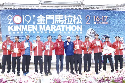 「在充滿歷史記憶的英雄島嶼跑出新的紀錄」!一年一度的金門馬拉松昨日早上在國立金門大學起跑,由金門縣長楊鎮浯、縣議會副議長周子傑、金大校長陳建民等貴賓鳴槍開跑,總共有來自十八個國家和地區八千位跑者熱情參與,展開一場體力、耐力及意志力的長跑競逐,來自肯亞的選手喬治(George Mbugua Ngure)以2小時15分16秒在全馬封王,並改寫大會紀錄。縣長楊鎮浯指出,金門馬拉松賽事每年都是秒殺,還沒來參加過金門馬拉松的跑友,記得明年要快來報名! 繼前一天金門馬拉松健康休閒五公里組開跑熱身後,二○一九第十二屆金門馬拉松競賽於昨天早上七時假金門大學鳴槍開跑,縣長楊鎮浯、副議長周子傑、金門大學校長陳建民、體育會理事長唐麗輝議員,以及金寧鄉長楊忠俊、金沙鎮長吳有家、參議呂清富、教育處長羅德水、觀光處長丁健剛、工務處長許鴻志、社會處長董燊、主計處長王崑龍、人事處長蔡流冰、政風處長陳治平、金門縣警察局局長劉耀欽、金門國家公園管理處副處長蘇承基等,還有廈門體育局副局長吳明顯、日本岩手縣縣南振興局經營企劃部長鈴木一史、經營企劃部主查中機純子、花卷市馬拉松事務局局長佐藤隆治等外國貴賓,以及贊助商特步集團總監吳麗欣、維他露公司顧問莊正祿、維他露公司基金會執行長侯至祥、家樂福總經理王俊超、家樂福基金會執行長蘇小真、王大夫一條根總經理王建順、昇恆昌經理劉雅均、路跑協會理事長范姜瑞等貴賓共襄盛會,為選手加油。 縣長楊鎮浯致詞時表示,大家精神抖擻的準備開跑迎接好成績,每一位跑者都可以感受得到,金門也隨著大家的到來興奮起來,這就是馬拉松最迷人的地方,一直以來感謝大家積極的參與,讓金門馬拉松走出自己的路,而且越辦越好!特別是今年有來自十八個國家地區八千位的跑友們一起來參與金門的馬拉松,也說明金門馬拉松路跑活動越來越受到國際間各城市的歡迎。 他並表示,金門擁有豐富的多元文化,其中一項就是大家最熟知的戰地文化,所以在金門跑馬拉松除了能領略金門傳統文化之美,也可以感受到金門戰地文化的不一樣跑馬拉松氛圍,包含部隊的參與、有軍車的前導等,這就是金門馬拉松走出自己的風格,從中更可以感受到金門馬拉松十二年來不斷的精益求精,不斷的順著跑友們建議越來越好的馬拉松比賽。 楊鎮浯也感謝所有來參加的好朋友們,並希望大家來參與馬拉松賽事只是認識金門的一部分,透過賽事的參與,能有更多更多來自各地的好友,到金門來走走,推介金門讓大家認識,邀請更多的好朋友來金門,領略金門人的熱情。他並祝福所有朋友,在平安順利健康前提下,盡自己最大的努力,跑出自己最滿意、最理想的成績。 縣議會副議長周子傑歡迎所有參賽的選手時說,用你們健康的腳步跑出愛的足跡,十二年來歷歷在目!在楊鎮浯縣長的領導下,今年是最好的,但期待明年會更好;金門有很美的風景,也希望金門馬拉松有大家的參與,跑出健康、跑出愛!「你們愛金門,金門更愛你們」! 今年參賽八千位的選手中,除了精英選手之外,包括參加全馬的廈門體育局副局長吳明顯、萊爾富董事長汪亦祥以及從日本來訪參加半馬的岩手縣振興局長鈴木、花卷馬拉松事務局局長佐藤,甚至連來採訪的愛爾達主播魏楚育和蔡宜瑾及緯來體育記者汪名孍也都下場參賽。 金門縣警察局也出動警力及協勤民力在比賽路段進行交通管制疏導措施,讓比賽進行相當順利,而熱情支持馬拉松長跑運動的金門鄉親,也組成啦啦隊在馬拉松比賽經過的路口,為選手加油打氣! 今年金門馬拉松不只邀請國軍加入吉普車做為賽道前導車,並以軍用卡車做為選手殿後的收容車之外,金防部還有300多名軍士官參賽、支援100多人,今年還首度在沿途擺軍事裝備,包括牽引式榴砲、中型戰車,海龍蛙兵還派出20人以整齊隊呼唱軍歌的方式抵達終點,除了陽剛味外,大會還特別從對岸請來連續3年獲選為「中國十大跑團」的「福建最顏值路跑團」由團長姜蕊帶領12名美女跑者,首度參與金門馬拉松協助做配速員。 縣長楊鎮浯在接受媒體訪問時也說,金門馬拉松帶給跑者完全不同的感受,所以每年這項賽事都是秒殺,沿途不僅有仿軍事砲聲和裝置,還有閩南式建築和滿滿的金門人情味,還沒來參加過的,記得明年要快來報名! 今年金門馬拉松也獲得不少贊助商支持,包括:金門酒廠股份有限公司、維他露食品股份有限公司、特步中國投資有限公司、家樂福、昇恆昌股份有限公司、天之桂貢糖、遠東航空公司、ALL SPORTS、王大夫一條根有限公司、登爾國際貿易有限公司、萊爾富,大陸方新合作企業及廈門廣電集團、咕咚網等。