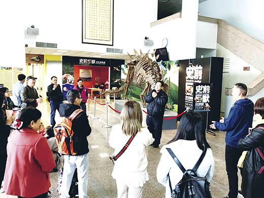 首次在金門舉辦的大型展覽史前巨獸—古生物特展,看展人次於春節連假期間破萬!春節前已有不少人到文化局和這些史前生物來場近距離接觸,春節連假返鄉及來金旅遊的看展人潮,更在大年初一至初三這幾日迎來破萬的看展人次。 由台灣博物館策辦的古生物特展,自今年一月二十四日起開始在文化局展出。隨著時代的進步,人們更容易取得資訊,走進博物館的人數明顯受到影響,去年的世界博物館日主題「新方法、新公眾」,台灣博物館開始主動出擊,將館藏帶到更多的地方和更多的人見面,自去年二月起辦理古生物特展,從離島馬祖開始巡迴展出,讓民眾不用跑太遠就能看到珍貴的展品。這項展覽在金門展出以來,藉由學校的推廣,許多學生皆曾到文化局看展。 文化局志工表示,展覽開幕後,許多學校帶著學生觀展,像是賢庵國小、中正國小等學校,古寧國小更由校長黃芸芸帶領全校學生到文化局看展,對於金門的學子而言,這是一次別開生面的校外教學。賢庵國小楊淳芝老師表示讀大學時學校離台中科博館不遠,她常常到科博館看展,因此對於那些在幾億、幾萬年前的古生物是不陌生的;楊老師也親自為學生導覽,詳細且生動的解說,為學生上了一門史前生物的課。 文化局表示,志工在展覽期間都會記錄每日不同時段的觀展人次,春節期間的觀展人潮衝到了一萬,除了連假期間的影響之外,不可不說這次展出的古生物確實有吸引人之處;初一至初三這幾天的打卡送小恐龍活動,更為展覽帶來許多的人潮。文化局志工表示有不少小朋友在老師帶隊看展後,和家人再次到文化局觀展,看看這些令他們躍然心動的物事,且能為一起看展的家人導覽解說。志工充滿自信地表示,為了此次古生物特展,文化局特地請專家為志工們上課,幾日的展覽下來,對於日後需要導覽的展覽自覺有信心能做得不錯;也希望文化局藉由此次辦理大型展覽的經驗,能迎來日後更豐富、多樣的展覽及演出。