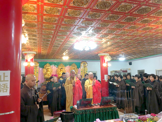 昨為己亥年正月初九,金門太武山海印寺照例舉辦了一場法喜充滿的齋天大法會。在性海師父和金門佛教會理事長湛因師父主法引領下,逾百位信徒虔誠供佛齋天、禮敬三寶,法會莊嚴殊勝。 依佛教的說法,齋天或稱「供天」,全應稱「供佛齋天」,民間稱為「拜天公」,但兩者差異頗巨,因為佛教的供天,是奉供三寶而後供天,那佛教徒是正信三寶弟子,皈依佛、法、僧,為什麼要「拜天公」呢?因為諸天歸命於佛,且奉行正法,修諸善業,所以禮敬諸天。 而據民間的說法,農曆正月初九「天公生」,是民間信仰天公(玉皇大帝)的誕辰,許多人家會在正廳前擺設祭壇,或闔家老少同往天公廟祭拜。對比佛教認為玉皇大帝是虔誠護法的帝釋天,以「禮拜供養三寶,請諸天吃齋」為法會主軸,顯見「供佛齋天」有其特殊意義、不單只是「拜天公」而已,而「供佛齋天」歷來也被視為是開年後最重要的第一個法會。 當然,在民間信仰中,玉皇大帝是傳統道教信仰中最高位階的天神。正月初九拜天公的習俗,主要流行閩南與台灣一帶,傳說唐朝時黃巢的軍隊從北方南下,福建居民躲於甘蔗園避殺禍,至黃巢軍退離,居民「重見天日」正是大年初九子夜,即行祭神以謝天恩,並補償錯過了的新年,而後流傳成俗。 昨日海印寺齋天法會於清晨五時正式展開,法會由性海大和尚和金門佛教會理事長湛因法師共同主法。性海師父說,「齋天」是修福修慧很重要的一環,福報是修來的,而非天上掉下來的,只有多說好話、多行善事、廣結善緣,才能修得大福報。也希望藉由禮佛齋天的功德力,和與佛法和諸上善人的相近、相親,看得開、放得下,相信福報自然會隨著自己種下的好因好緣而來。 湛因師父除了祝願大家新年快樂,他也強調,有福報的人才能快樂,有福報的人做什麼事都能成功,至於如何修得福報,他說「要做該做的事,不要做想做的事」,因為,做快樂的事,一定快樂溫馨,做想做的事則不免痛苦和煩惱,福報要從「布施、持戒、忍辱、精進、禪定、般若」中而來,以六度行萬行,才能修得大福報。 在佛門莊嚴的梵唄聲中,這場法會一連持續了三個鐘頭,香、花、燈、塗、果、茶、食、寶、珠、衣等「十供養」依序上供,參與法會的信眾也在性海大和尚和眾法師的引領下,以虔誠的心,禮拜供養佛、法、僧三寶,並希望透過請諸天用齋等科儀,來達到消災祈福的目的。 金門佛教會指出,為了感謝諸天,海印寺每年正月九日,都會以佛門最隆重莊嚴的儀式,備辦素齋虔誠迎請諸天光臨受供。供佛齋天的儀式包括薰壇灑淨、請聖、獻供、上供、迴向、送聖等。會場佈置、供品更是考究,是佛門中一場最隆重的宴會,只是所請的賓客非一般世間人,而是諸天界的天人。 法會上供有「南無本師釋迦牟尼佛蓮座」(居中)、「南無第一威德成就眾事大功德天」(居左)、「南無光明會上諸佛菩薩蓮座」(居右)。齋天的多列供桌上,有一列陳設虎頭蘭盆花、澎粿塔、橘子塔、麵線塔、蘋果塔、「紅圓仔」塔、龍眼盤。有一列是各式蜜餞塔。有一列是豆干、素菜等餚饌;有一列陳設華嚴經、蓮燈、佛珠等。有一列置有木魚等法器。在性海大和尚主法下,參與這項齋天法會的善男子善女人約百人。法會中頌讀的佛經有《金光明經齋天科儀》等。