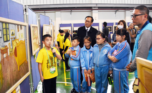 廣達游於藝系列展覽「擁抱梵谷-探索生命的調色盤」昨開幕,多年國小學童以黑光劇、星空的畫等揭開精彩序幕,學子化身解說員穿針引線帶領與會貴賓認識展覽也進行一連串星星摺紙、實作遊戲體驗,最後也以梵谷名畫《向日葵》發想,進行「披薩烤窯」,感受視覺、腦力以及味蕾上的豐富多元和趣味。該展覽為期至22日止,假日不開放,配合導覽服務,歡迎12人以上之民眾、學校、機構預約參觀,洽詢電話332470#12。 「擁抱梵谷-探索生命的調色盤」開展,為期至2月22日止,這是多年國小第三度與廣達文教基金會推動的「游於藝」系列展覽活動。昨日上午十時假視聽教室舉行開幕儀式,縣議員唐麗輝、董森堡、李應文、金沙鎮鎮長吳有家、金湖鎮鎮長陳文顧、金湖鎮民代表會主席蔡乃靖、金湖鎮民代表林嘉森、福山國小校長李進士、教育處處長羅德水、科長許能麗,金沙學區暨金湖學區各校校長,安瀾及柏村國小兩校學生、多年家長會會長吳天財、新前墩社區發展協會理事長陳慶虎、大洋社區發展協會理事長吳佳駿、多年國小全體師生、愛心媽媽、家長以及師生等出席,活動在多年國小部黑光劇、幼兒園向日葵律動及星空的畫演出中揭開熱鬧序幕。 多年學子經過暑期及寒假的藝術體驗課程,昨日現場化身小小尖兵,輪番上陣為與會貴賓導覽解說,也指導師長動手DIY創意星星摺紙、實作遊戲體驗等,讓現場師長及貴賓當起學生玩味一番。最後,師生以梵谷名畫《向日葵》做為發想,結合多年國小的「披薩烤窯」,製作出火焰般絢麗的向日葵披薩,賓主共同進行窯烤披薩的體驗活動,感受視覺、腦力以及味蕾上的豐富多元和趣味。 多年國小表示,梵谷被當今世代公認為世界上最偉大的藝術家之一。本次擁抱梵谷展,多年國小以延伸性、創作性、在地性、廣博性的藝術意象發想,結合了語文、藝術與人文、社會領域、綜合活動、生活課程與生命教育議題,延伸設計了《梵谷‧謎樣‧色彩》課程,讓與會師生可以經由一連串體驗活動,透過聽覺、視覺瞭解梵谷的生平、年代、故事,同時也與學生一起討論梵谷的生命狀態,透過教材輔助釐清梵谷在人生的高低潮中的繪畫表現,引導學生認識自我。此外,帶學生以梵谷的畫作進行多媒材大幅作品集體仿作與黑光劇表演,讓學生在戲劇表演中體悟梵谷各時期畫風、繪畫色彩與情緒生命之間的脈絡表現,別具意義。 多年國小「擁抱梵谷-探索生命的調色盤」展覽,在廣達文教基金會、高雄福山國小、金門教育處的支持,以及學校老師、家長、愛心媽媽的合作,與孩子共同學習的成果展現。展覽為期至2月22日止,歡迎預約參觀,洽詢電話332470#12。