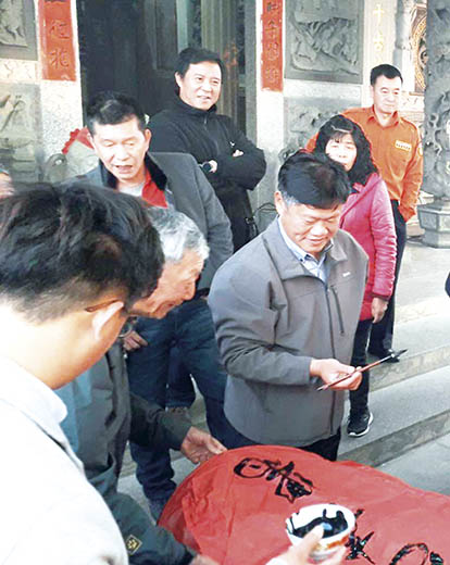 昨日是農曆正月初二,湖下村、安岐和湖尾三鄉,遵循百年歷史熱鬧舉行迎奉關聖帝君的巡安活動,縣長楊鎮浯、金寧鄉長楊忠俊等人也參與巡安活動,祈佑地方安寧,同時也向鄉親拜年。神輿、陣頭旗幟,響個不停的鞭炮聲,將村落渲染得熱鬧滾滾。 湖下、安岐、湖尾三鄉供奉忠肝義膽的關聖帝君,輪值駐祀廟宇,每年農曆正月初二,三鄉會迎關帝爺,今年是由湖尾(東堡、中堡、西堡)值社,湖尾村民可說是總動員,組成迎神隊伍,於昨日上午八時許出發步行到鄰近安岐村內保安殿迎請關聖帝君到中堡寶靈殿駐祀,浩浩蕩蕩的迎神隊伍,以及響不停的鞭炮聲,為寧靜的鄉村掀起熱鬧慶典的氣氛,也為新年增添喜氣。 縣長楊鎮浯、金寧鄉長楊忠俊、立委候選人洪麗萍、陳滄江、陳玉珍也到安岐保安殿參與廟會活動。陣頭聚集於保生大帝廟前廣場,神輿飛舞,人氣沸騰。 楊鎮浯、楊忠俊虔心上香,祈求諸神護佑地方風調雨順、地方安寧。隨後由楊鎮浯迎請關聖帝君神像坐上神輿,並和鄉親一起護持關聖帝君的神輿,巡安地方。從保安殿出發到湖尾,浩浩蕩蕩的陣頭,繞境村內廟宇,村民虔誠的拜拜,一路上鑼鼓喧天,鞭炮聲不絕於耳,將地方渲染得熱鬧萬分。許多返鄉遊子回家鄉參與地方傳統廟會活動,還有遊客也爭相觀看迎神的熱鬧場面。 巡境活動,聚合了本地和旅居外地的村民參與巡安活動,許多年輕人主動幫忙扛神輦、旌旗,敲鑼打鼓,為地方事盡一分心力。沿途,村民也在自家門口備香案,虔祭關聖帝君,流露出對關帝爺的敬仰。 三鄉為金寧鄉所轄自然村的湖下(含東坑)、安岐(含山灶)、湖尾(即東、中、西堡及湖南),約在清季時期創立,聯誼的共同宗旨,主要是為了團結合作;婚喪喜慶,過從互助。農曆正月初二,三鄉遵循百年歷史熱鬧舉行迎奉關聖帝君的巡安活動,鄉民沿續地方傳統民俗慶典,流露出對關帝爺虔誠信仰。