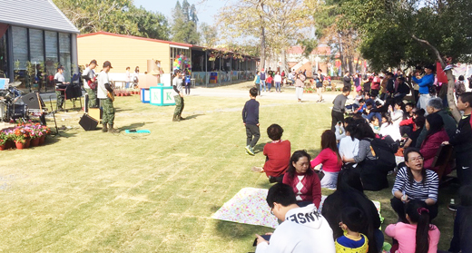 金門新春農業展國軍弟兄也沒缺席。金門守備大隊「擎天樂團」初二至初三巡迴林務所、農試所以及畜試所表演,以一連串流行歌曲向鄉親賀歲,並邀鄉親同台互動,軍民同樂喜迎金豬年,讓不少鄉親民眾回憶起早期國軍春節舞龍舞獅的傳統。而今年新春活動有國軍的獻「聲」不僅為活動增色,也成為另一大亮點! 地區駐軍在防務之餘,響應地區熱鬧喜氣的新春農業展活動,金門守備大隊「擎天樂團」也出擊,以美聲熱力橫掃各所,並用一連串流行歌曲炒熱現場氣氛,透過聽前奏猜歌名、點歌等和現場民眾互動,同時也邀民眾同台高歌,軍民歡喜迎金豬年。其中,初二下午在農試所的表演,地點在農業體驗館-手作教室前,親子於樹蔭下席地野餐聽歌,好不愜意。 而金防部金門守備大隊「擎天樂團」成員均來自部隊官兵,分別是主唱呂佳瑩(下士),鼓手吳元景(中士)、吉他吳勝凱(中士)、貝斯陳哲熙(上兵)、鍵盤蔡筱婷(下士)。除了在各自防務上忙錄外,彼此因為喜愛流行音樂也透過樂團認識,並培養默契,每年在金防部所主辦的「暑期戰鬥營」中擔任炒熱氣氛的最佳助攻手。除了歷年於初一在烈嶼鄉保生大帝廟持筊活動表演外,今年樂團也在春節期間走出部隊,巡迴林務所、農試所、畜試所,以動人的歌聲為金門鄉親帶來最悅耳的新春祝福。 金防部金門守備大隊「擎天樂團」連日來,由處長段賢揚等人領軍前往,並獻上一連串耳熟能詳的歌曲,包括,「好膽你就來」、「你啊你啊」、「追追追」、「開門見山」、「海闊天空」、「永遠不回頭」、「浪流連」、「告別氣球」、「我還年輕」等,現場鄉親聽得如痴如醉,不吝惜報以熱烈掌聲,博得滿堂喝采,不僅為新春活動增色,也成為活動中另一大亮點!軍民也期待明年新年再見!