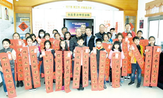 財團法人金門縣張文夏、黃玉燕紀念館教育基金會「107學年寒假書法研習」,吸引滿班學子參與,地區書法名家張水團到場指導,逢新春佳節此次也精選春聯佳句由學員練習書寫,最後完成一副春聯。鎮長吳有家也到場關心,並代表基金會頒發紅包嘉勉學子,學子習得技藝又領獎,開開心心過新年! 為弘揚中華固有文化,精進書法造詣,推廣社區書法教育,促進書藝提升,財團法人金門縣張文夏、黃玉燕紀念館教育基金會辦理「107學年寒假書法研習」,儼然已是金沙學區寒假一傳統活動。同樣邀請金門地區書法名家張水團到場義務指導,由基金會工作人員張金福、李仁木、施宏遠等擔任行政支援工作,分學童班及親子班,今年同樣是滿班狀態,甚有祖孫三代同堂參加親子班,也讓老師及工作人員對此學習風氣感到十分欣喜。 此次課程中,指導老師張水團自編講義,帶學員從握筆、坐姿等開始,並分析筆畫、講解字體的佈局及運筆,循序漸進領略中華文字之美。逢農曆春節也精選春聯範本,由學子從中挑選一副自己喜歡的作品臨摹,再現場精心指導修正,讓許多學員收穫滿滿,於活動尾端完成自己的春聯作品,主辦單位更精心準備紅包嘉勉每一位參加學員,也祝賀新年快樂! 金沙鎮鎮長吳有家也現身會場,關心學子學習情形,並向老師和工作人員致意賀節。同時他也代表基金會頒發紅包給每一位學員。吳有家表示,書法是中華國粹,鼓勵有興趣的學子珍惜資源,把握機會向老師挖寶學習,並且要持之以恆練習,未來便能寫得一手好字。