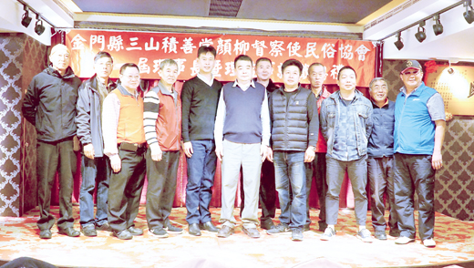 「金門縣三山積善堂顏、柳督察使民俗協會」於日前舉行第一屆理事長暨理監事成員就職典禮,在第一屆理事長莊振源正式走馬上任後,該協會正式運作,而首任理事長莊振源也捐贈十萬元,做會未來會務運作發展的基金。 「金門縣三山積善堂顏、柳督察使民俗協會」第一屆理事長暨理監事成員就職典禮於日前在葡京餐廳舉行,理事長莊振源與多位理監事成員出席,金門縣政府社會處副處長李文堆、金城鎮公所主任秘書黃耿銘、南門里長鄭易岳、北門里長許績才、東門里長蔡祥坤、金城鎮代表林金英等人也到場致意,向協會的理監事成員們祝賀;李文堆並代表縣府頒發當選證書予理事長莊振源。 第一屆「金門縣三山積善堂顏、柳督察使民俗協會」的成員有:理事長莊振源;常務理事楊肅謙、顏章團;理事陳金城、蔡卿鐘、陳火炎、柯重勇、鄭新民、黃傑威;常務監事楊天水;監事陳水員、陳水興;總幹事林壬華;會計許永土;出納吳成浩;行政陳光泉。 莊振源表示,三山積善堂顏、柳督察使民俗協會的成立要感謝辛苦的會員們,在大家協助以及鼎力奔走之下,才能讓第一屆金門縣三山積善堂顏、柳督察使民俗協會順利成立,而擔任首屆理事長的他也會積極為會務發展而努力。 三山積善堂顏、柳督察使民俗協會表示,該協會經金門縣政府於去(一○七)年的十月十七日核准立案,全銜定名為「金門縣三山積善堂顏、柳督察使民俗協會」,該協會成立的宗旨在為闡揚顏、柳督察使犧牲奉獻、監察人間善惡以定懲罰,具有警示世人行善效果,為讓成員能更具有凝聚力,組織更建全,團結互助之精神,希望能傳承優良傳統民俗文化,對端正社會良好風氣能有所助益,藉以促進社會安和融洽,特結合理念相同之人士成立本會。 此外,根據「東嶽泰山三山積善堂顏、柳督察使略述」指出,顏、柳督察使,係為唐代忠臣,原供奉於福州「東嶽泰山廟」中,由於神威顯赫,香火一直很興盛,而於民國三十八年,當時追隨政府轉進來金門的福州籍游擊隊員,冀望能藉故鄉這兩尊神祇的庇祐,讓離鄉背井的遊子能逢凶化吉,遂由隊員憑著自己原有的記憶來塑製而成,「顏、柳督察使」主要負責監察人間善惡以定懲罰,具有警示世人行善的效果,目前這兩尊神衹供奉於金城鎮南門萬善祠之中,每年農曆三月十六為顏、柳督察使聖誕千秋日,農曆四月十二日的後浦迎城隍遶境,兩位督察使則是擔任開路先鋒。