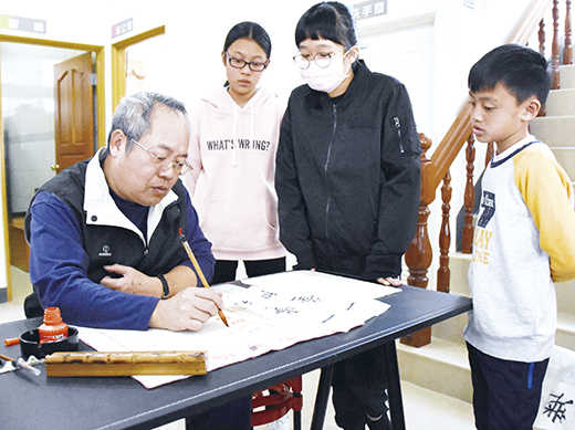 財團法人金門縣張文夏、黃玉燕紀念館教育基金會「107學年寒假書法研習」28日起登場,儼然已成為學區一項傳統活動,此次課程同樣由地區書法名家張水團指導,他特別編製講義告訴學員寫字的基本要領,逢農曆春節也精選對聯,由學員挑選練習,並一一指導,最後每人將完成一幅自己書寫的春聯。張水團鼓勵學子,大膽運筆,多練習,自然能寫出好字! 為弘揚中華固有文化,精進書法造詣,推廣社區書法教育,促進書藝提升,財團法人金門縣張文夏、黃玉燕紀念館教育基金會辦理「107學年寒假書法研習」,並由金門地區書法名家張水團擔任義務指導老師。基金會工作人員張金福、李仁木、施宏遠等擔任行政支援工作,免費提供所需紙張筆墨供與會學童及民眾使用。活動已行之有年,儼然已是金沙學區寒假一項傳統活動。 昨日進行第二次課程,指導老師張水團自編講義,解構中華文字之美,並分析比劃、佈局、寫字基本姿勢、握筆及運筆等,並精選春聯範本,由學子從中挑選一副自己喜歡的作品臨摹,再由張水團老師於現場精心指導修正。最後,每位學員於2月1日完成一幅春聯作品並帶回家張貼,無疑是本研習最實用的成果。