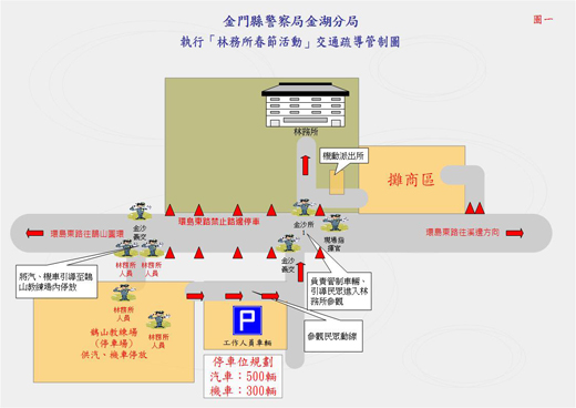 春節期間,林務所、畜試所、農試所等相關單位於春節大年初一至初三辦理相關活動,金湖分局表示,為因應活動可能帶來之人潮與車潮,屆時將於各風景區周邊道路實施交通疏導管制措施,以維道路之行車順暢及人車安全,請前往各風景區之民眾及行經該路段之駕駛人配合員警或義交人員之指揮管制。 金湖分局指出,春節期間規劃活動周邊道路交通疏導管制措施如下: 一、林務所部分:林務所大門口前環島東路路段禁止雙邊停車,汽、機車均停放於鵲山教練場內之停車空間。 二、植物園部分:汽、機車可停放於園區內之停車空間,如已停滿,可再停放於環中路之停車空間。 三、農試所部分:農試所大門口前環島東路路段禁止雙邊停車,汽、機車可停放於園區內之停車空間,如已停滿,車輛停放於往多年國小之道路(靠右單邊停車)及左側之停車空間,車輛離去時往新前墩方向駛離。 四、畜試所部分:畜試所大門口前太湖路三段路段禁止雙邊停車,汽車可停放於園區左前方之停車空間,機車可停放於園區內之機車停車空間。 五、獅山砲陣地部分:砲陣地門口前陽沙路路段禁止雙邊停車,汽、機車可停放於園區內之停車空間,如已停滿,可再停放於民俗文化村前方之停車空間。 金湖分局分局長張文峰表示,農曆春節期間,眾多旅臺鄉親返金團圓、觀光客來金旅遊,為使春節期間各風景區交通順暢,特於各點派員實施交通疏導措施,相關風景區之交通疏導管制措施可於金門縣警察局金湖分局網頁及臉書上查詢,請出遊民眾事先上網查看,必能平平安安出遊、快快樂樂回家,歡度春節假期。