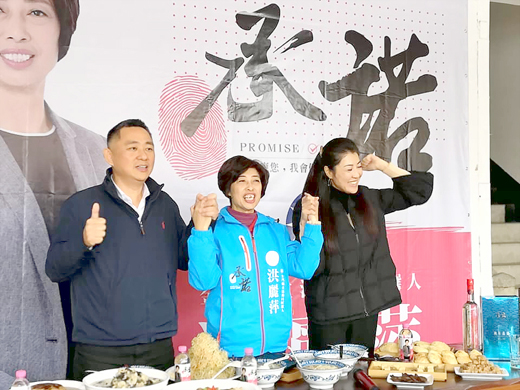金門立委補選選情激烈,為此,國民黨徵召的候選人洪麗萍,特別邀請在韓國瑜選前之夜爆紅的立委許淑華前來助陣,期望能夠使選情加溫。 許淑華在九合一大選後人氣水漲船高,神力女超人的裝扮至今仍讓民眾印象深刻,昨日中午,許淑華別於神力女超人的性感穿著,一身勁酷黑色套裝登場。為了迎接許淑華跨海相挺,洪麗萍也準備了一桌金門小吃歡迎,並一同開直播介紹金門美食,楊鎮浯縣長也在百忙之中抽空前往加油打氣,許淑華也稱讚金門的美食很有特色。 直播結束後,雙方召開記者會,在記者會中,洪麗萍表示,非常榮幸能夠代表國民黨參選金門立委,未來若當選,在立院黨團的協助,以及與縣府的密切配合下,對於推動修正離島建設條例,以及兩岸間的新四通,她都非常有信心,中央地方將協力為金門鄉親爭取最好的福利。許淑華則感性地認為,洪麗萍當初以大局為重,為了縣長選舉放棄連任機會,是個黨性非常堅強的人,再加上從議員到議長,政績鄉親有目共睹,值得背書,希望金門民眾給洪麗萍一個機會,讓洪麗萍有機會成為她的同事。因為年節將近,活動也安排了發放福袋,許多民眾爭相與許淑華及洪麗萍合照留影,甚至有民眾直呼許淑華比電視上更漂亮,能在新年拿到這個福袋就是最好的祝福。 來到金門,洪麗萍及楊鎮浯縣長也陪同許淑華參訪金門最重要的產業│金酒公司,雙方在閒談中也提到了此次前往福建交流,大陸對於金酒銷售的正面回應,希望未來許淑華能夠協助金門的立委,一起爭取中央政策配合,讓金酒走得更遠。 此次金門立委補選,有六組候選人登記,選情空前激烈。