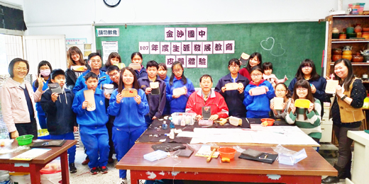 金沙國中每年寒假都會辦理一系列生涯試探活動,並別開生面於上學期休業式後在校內辦理皮雕體驗活動,由施宏遠主任帶領學生學習簡易皮雕製作方式及技巧,每年都研製新主題,今年也為學生客製圖案,學生透過皮革揉打、刻印、縫合等完成精美的皮雕包,相當有成就感地將成品帶回家歡喜過新年。 金沙國中每年在寒假所規劃的一系列生涯試探活動,內容有皮雕、汽車美容、餐飲等項目。今年並特別在休業式後假美術教室舉辦皮雕體驗活動。由施宏遠主任擔任講師,就個人皮雕製作學習歷程,向參與的學生、老師介紹,也指導師生各種皮雕製作方法與技巧,接續並帶領學生動手個性化皮雕創作,透過各種器材的應用,雕出精美的皮革工藝品。 金沙國中的皮雕製作已是沙中的一項重要傳統,施主任每年創新主題,今年的手機包或萬用包,除了實用外還讓學生客製化圖案和文字,例如,利用Hello Kitty、風獅爺、英文字母做造型,模樣可愛、討喜又吸睛。學生們經過圖案描繪,皮革的揉打、刻印、上色、縫合,完成精美的皮雕包。 金沙國中校長黃明森表示,研習課程主要是讓學生培養興趣,未來在升學與就業時能審慎考慮自己的專長,並利用平日在研習上所積累的學習成果,投注在未來發展之上,學校亦會持續推出各項研習課程,讓學生們在成長中學習,同時也能在學習中成長。