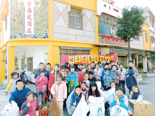這學期已進入尾聲,古城國小在放寒假前,配合「國家清潔週」活動,利用該校這學期「休業指導」活動,在打掃完學校室外整潔區及室內班級教室、專科教室之後,特別安排一個小時進行社區整潔服務活動,由校長楊成業及有關師長帶領國小部各班級學生前往古崗及金門城社區進行社區清潔服務活動,藉此讓學生體驗在服務中學習,以及了解社區環境保護的重要,也激發師生共同關心及打造整潔美麗的社區生活環境,一起迎接農曆新年的到來! 農曆己亥豬年即將來臨,為了迎接農曆春節的到來,古城國小一至六年級學生,在這學期休業指導活動第三節時間,特別由校長楊成業、教導主任董麗芬、學務組長林火耐等帶領下,會同各班級導師和工友及替代役男,進行社區整潔服務工作出發前的任務分配及注意事項說明後,隨即由各班級導師帶領班上學生,攜帶掃把、畚斗、垃圾袋等清潔工具,大手和小手一起挽起袖子,兵分二路前往古崗、金門城等村落,走入社區進行清潔服務活動,協助打掃村落環境,幫忙清除垃圾,除了為社區環境清潔工作盡一份心力外,也希望讓社區民眾及鄉親大家在春節期間享有乾淨美麗的社區環境和溫馨美好的過節氣氛。 古城國小校長楊成業指出,該校為響應「國家清潔週」活動,培養師生愛護鄉土與公共服務的情操,日前特別利用這學期休業指導活動時,安排進行社區公共服務環境清潔活動。全校國小部一至六年級全體學生及教導處行政同仁、工友與替代役男共約130餘人,以實際行動響應,一起動手協助整理社區環境。 楊校長也表示,透過該項活動引導學生參與服務學習,期望讓學生更進一步認識及關懷自己生長與生活的社區及家園,並在服務中去了解與體驗社區環境保護的重要,共同為社區環保工作盡一份心力,也讓孩子在學校放寒假前,以回饋、感恩及快樂的心情與實際的服務行動,一同參與打造整潔、清新、環保的社區,以迎接即將來臨的農曆春節。