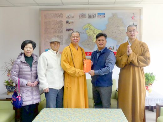農曆春節將屆,太武山海印寺弘法基金會董事長性海法師帶領董事慰問大、小金門五鄉鎮84戶急難戶家庭,贈送春節慰問金,並探慰大同之家院民,也贈送慰問金,並提前祝賀春節。 太武山海印寺弘法基金會董事長性海法師帶領道順法師、董事楊清國、洪志合、吳素蘭、王漢文、林莘恭和志工,前往金寧鄉公所拜訪鄉長楊忠俊,受到楊忠俊的熱忱接待。 性海法師委由鄉公所轉送慰問金予金寧轄區急難戶,楊忠俊代表接受慰問金,感謝太武山海印寺長年來對金寧鄉急難家庭的關懷與照顧。 性海法師一行人也前往金城鎮、金湖鎮、金沙鎮以及烈嶼鄉探慰急難戶,表達關懷之意。並前往大同之家關懷院民,與院民提前歡渡佳節。