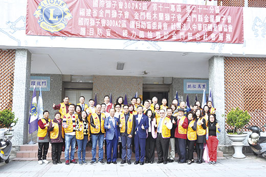 國際獅子會300A2區第11專區第21分區、金門縣金門獅子會、金門木蘭獅子會、金龍獅子會與中華民國愛盲協會及300A2區護目助盲委員會,昨日上午在金城國中體育館辦理「護目助盲金門聯合社會服務」義診活動,吸引地區許多長者和關心眼睛健康的民眾踴躍前往接受視力檢測。 縣長楊鎮浯受邀致詞時表示,很開心和感動參加這項活動,對於獅子會秉持做公益精神的寒冬送暖,用視力檢查形式的義診活動,以及過往捐贈輪椅或其他義診社會服務活動,是讚許有加。他並指出,現今3C產品很多,每個年齡層都要顧好眼睛,做好視力保健,才不致影響生活造成不便。 楊鎮浯也感謝獅子會獅兄獅姐們與中華民國愛盲協會舉辦這項公益活動,促進民眾眼睛的健康,讓金門社會正向能量持續向上提升,並謝謝大家的辛勞以及對金門這片土地的熱愛。 國際獅子會300A2區金門、木蘭、金龍獅子會三會成立歷經26年,每年在金門地區都會舉辦許多場公益社會服務。今年由第21分區主席沈建宏召集金門獅子會王國代會長、木蘭獅子會許雪芳會長、金龍獅子會洪麗雯會長,研議在108年初,舉辦一項大型聯合社會服務。後經300A2區護目助盲委員會及中華民國愛盲協會共同討論,決議在昨(20)日於金門舉辦護目助盲義診活動,並邀集台灣與金門多個團體、單位與企業共襄盛舉。 「護目助盲金門聯合社會服務」活動於上午九時三十分在祥獅獻瑞震撼鼓聲中熱鬧開場,金門縣大家長楊鎮浯縣長親自蒞臨參與活動,包括前副縣長顏達仁、前金門縣議會議長洪麗萍、金門縣議會議員石永城、金城鎮民代表會主席陳天成、金門縣政府社會處處長董燊、300A2區辦公室主任林子奕獅友、GST協調長劉湘潮獅友、11專區主席應海瑞獅友、駐區總監代表李惠齡獅友、中華民國愛盲協會理事長、同時也是300A2區護目助盲委員會主席何一滔獅友、300A3區前總監張美麗獅友、東南獅子會獅友,以及主辦、協辦單位的獅兄獅姐等貴賓到場參加,現場也吸引來自許多各鄉鎮的長輩及家長與孩童到場參與。 沈建宏致詞時指出,現今3C產品的普及化,不分老少幾乎人手一手機,視力問題已不只是年輕學童的專利,而是全民性的公敵,舉辦此次義診活動主要在於協助金門地區鄉親,進行視力檢測及護眼宣導,並加強視力保健知識,培養良好的視力保健習慣,加強家庭視力保健的執行,而這也呼應了國際獅子會成立百年來的服務精神。 義診活動現場由台北地區,双眼明眼科集團總院長(國內眼科白內障權威)何一滔獅友率領20餘名醫療團隊成員及金門鑫美光眼科診所江尚宜院長……等進行義診,協助民眾視力檢測,並提供各項視力保健與診療等諮詢服務。 金門縣警察局也設攤進行「反毒反詐騙」、「道安宣導」、金門縣消防局進行「居家防火安全與消防設備介紹」宣導,提醒民眾使用熱水器防範一氧化碳中毒,並宣導1991報平安及爆竹煙火安全宣導。金門縣衛生局則在現場進行「菸害防制、無菸環境及家庭」等宣導,金門防衛指揮部也配合參與國軍人才招募相關之宣導活動。 而金門地區民間單位有「博士助聽器」幫助民眾進行現場聽力測檢,還有可莉髮型的「義剪」及大炳師傅的整脊推拿……等義診活動,氣氛相當熱絡。 金門獅子三會獅友也配合共襄盛舉,如金門宏玻陶瓷廠、香蜂一條根、陳金福貢糖、馬家麵線及名城有限電視……等企業,熱情贊助相關伴手禮及禮品,金門縣銀髮族協會理事長翁明堆獅友率領五十多位金門銀髮族鄉親來檢查視力及聽力,金門縣精忠衛隊協會鄉親也蒞臨參與,整個活動現場攜老扶幼,好不熱鬧。