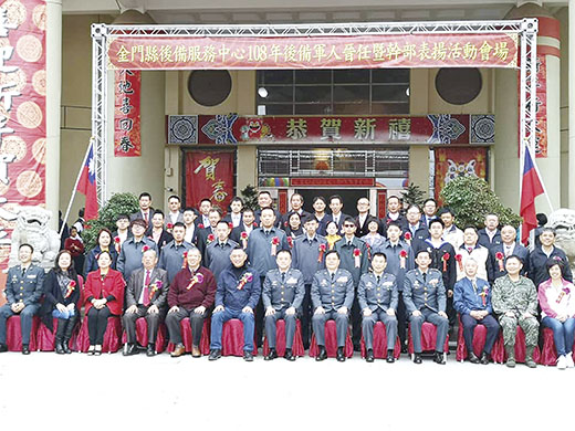 金門縣後備服務中心昨舉辦「108年後備軍人晉任暨表揚活動」,國防部副總長執行官陳寶餘上將抵金主持,宣讀施仲恩上士等十二人布達晉任命令及為其授予軍階,也頒獎表揚陳家興等廿五位後備輔導幹部。陳寶餘上將致詞時感謝後備伙伴長期對國軍的支持和協助,也感謝縣府及議會對國防的支持,也期勉後備幹部持續奮勇向前! 「108年後備軍人晉任暨表揚活動」昨日上午十時許假文化局演藝廳舉行,由陸軍金門防衛指揮部指揮官姜振中中將主持活動,金門縣縣長楊鎮浯、後備指揮部前參謀長林芳旋、消防局局長楊肅凱、榮服處處長呂媽定、青溪協會理事長蔡木川、退伍軍人協會理事長楊勝利、青溪婦女協會理事長洪麗治、青溪婦女協會副理事長許玉昭、金城鎮鎮長李誠智、金寧鄉鄉長楊忠俊、金沙鎮鎮代會主席周水土等貴賓,以及各鄉鎮後備中心幹部、眷屬等三百餘人到場觀禮。典禮前也安排全民國防園遊會、述美國小打鼓及舞獅表演炒熱現場氣氛,看得民眾驚聲連連,而現場也邀書法家到場揮毫,讓整個場面更加熱鬧也充滿年節氣氛。 在晉任表揚活動中,由金防部指揮官姜振中中將布達晉任命令,並為施仲恩上士等十二人授階,也頒獎表揚陳家興等廿五位後備輔導幹部。陳上將在致詞時表示,「後備軍人輔導組織」自民國五十五年成立迄今已邁入第五十三個年頭,從後幹班創班至今,也已培訓四三二期,金門則自八十三年起始有後備組織,也培訓二六六期,期許所有後備伙伴能夠在各期奠定的基礎下,接棒奮勇向前,永遠秉持「青溪忠義」精神。姜中將也指出,金門有令人難以忘懷的戰地精神,每次抵金都發現金門一直在進步,這都歸功於縣府及議會的建設,也感謝府會以及所有後備幹部對國軍和國防的支持。 昨日獲晉任十二人包括,施仲恩(晉任陸軍上士),黃震平、楊淇名(晉任陸軍中士),李文合、陳育群、洪智勇、呂宗澔、謝宗豪、徐英舜、陳是禮、翁偉銜(初任陸軍下士),洪英捷(初任海軍下士)。獲頒獎表揚者則有:陳家興(後備楷模輔導幹部),吳聯福、林仲輝、黃華僑、楊龍傳、蔡福盛、楊忠立(績優卸任幹部),黃一峯(後備楷模後備軍人),蔡顯貴、薛明雄、許博傑、洪雪文(優秀輔導幹部),吳宏順(績優文宣幹部),許建新(績優安全幹部),楊肅養、陳世強、吳明雄、許績旭、林嘉苓、李易勳(績優運動幹部)、莊雅琇、陳麗媛、陳珍珍、張瑞芬、林愛惜(後備楷模後備眷屬)。 金防部指揮官姜中將也特別轉達國防部長嚴德發對後備袍澤的感謝與嘉勉,希望大家能以全新的服務熱忱,持續傳達輔導會的核心價值,讓輔導組織再創高峰。最後也和與會貴賓與受表揚的後備成員合影留念,期許大家抱持「一日青溪、終身青溪」的職志,做為國軍堅實的後盾。
