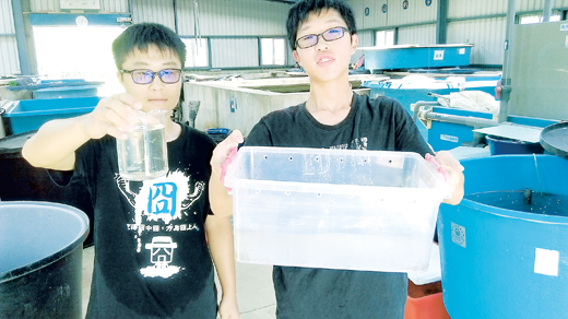台灣觀賞蝦外銷的主力之一,水族箱的清道夫「大和藻蝦」,人工培養十分困難,金門農工水產養殖科經過多年的努力,近日宣布繁殖成功,期待這項研究成果有助於減緩目前野外大量捕撈,導致野生族群日益減少的問題。 金門農工養殖科主任董倫如介紹,大和藻蝦即是大和米蝦(Caridina multidentata)的俗稱,此蝦分佈於日本、琉球、台灣、馬達加斯加等處。簡易的雄蝦與雌蝦之區別;在於體側上具有斷斷續續的紅棕色條紋的不同。母蝦的條紋會呈現長條狀,公蝦會呈現點狀。另外雌蝦的腹部也會比雄蝦來的大又深,主要是用來抱卵的保護措施,才能順利孵化出下一代。 董倫如說,大和藻蝦體型最大可達5公分,成長於淡水溪流中,經交配、產卵、孵化,其幼苗順著溪水流入海中漂浮著,經攝食、成長、變態之階段後,下沉營底棲生活,此時隨著幼蝦成長,逐漸往河口處進行,接著進入淡水溪河中,以後全然在淡水中成長。大和藻蝦也是台灣觀賞蝦外銷的主力之一。目前一般業者出售的蝦大都採集自野外溪流中,因此造成野生族群量日益減少。 董倫如補充,大和藻蝦,顧名思義即是攝食藻類的蝦子,尤其酷愛附著性藻類。另外,此蝦有一特性,成長時,幼苗階段需在海水中索餌成長至幼蝦,再游回淡水中成長。因此,水族業者將此蝦當做水草缸的「清道夫」,原因包括:一、好食藻類之特性可清潔水族缸壁、水草葉面、石頭等表面的藻類,看起來乾淨又美觀,大大節省人力清潔的消耗。二、幼苗無法在淡水中成長,因此可控制水族缸中的蝦數量。三、沒有一般淡水蝦的大螯腳,不會破壞水草的造景美觀。四、背部有一條金線,頗具觀賞價值。 董倫如說,大和藻蝦在水溫28度C左右,從產卵、孵化、成長、幼蝦約需2個月,幼蝦再經過2個月就可成熟再交配。目前又可再見到成熟的母蝦抱卵。剛孵化的幼苗約1mm,頭下腳上垂直的浮游著,全身近透明不易發覺。經移至海水中,經一個月的飼養照顧,幼苗由浮游變態轉換成下沉的「正游」,這時完整的「蝦樣」就呈現。此時體長約3mm,沿著池邊游得又急又快,此時即可逐漸淡化至全淡水。 董倫如表示,大和藻蝦不好繁殖,目前能繁殖出來的人不多,能大量繁殖出來的幾乎沒有,原因在於幼苗階段的水質及餌料問題,這蝦子不好繁殖,之前一直延用舊有蝦子繁殖模式,成果不佳,經該科努力再努力,也是花了幾年時間研究、實驗,才稍掌握其中的關鍵要點。 金門農工校長劉湘金表示,金門農工養殖科成功繁殖出大和藻蝦,讓養殖科的同學又多增加一項技能外,也希望未來能減輕大和藻蝦在野外族群被捕抓的壓力之外,也希望朝著外銷出口的目標進行。