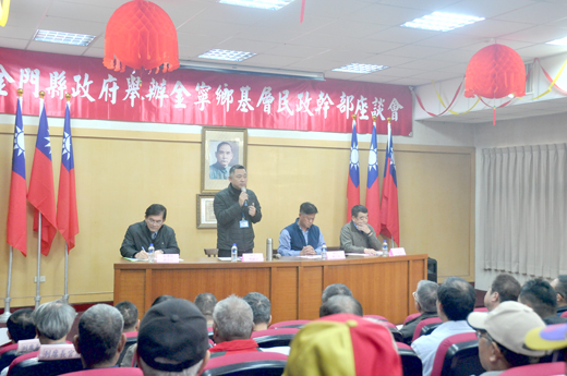 金門縣政府民政基層座談會,烈嶼場次昨(二十二)日召開,縣長楊鎮浯率領秘書長張忠民跨海到烈嶼鄉,聽取基層民政幹部的心聲,並藉由與基層第一線人員面對面的機會,直接了解民眾有何需求,或是縣政建設上有任何需要改進之處。 烈嶼場次民政基層座談會於昨日下午四時起,在烈嶼鄉公所四樓團康室舉行,會議由縣長楊鎮浯主持,烈嶼鄉長洪若珊、烈嶼鄉民代表會主席方駿洋、副主席吳福全以及多位鄉民代表、基層幹部到場陳述意見;而縣府方面,秘書長張忠明、民政處、財政處、教育處、觀光處、工務處、社會處、衛生局、行政處、地政局、文化局、稅務局等單位均出席與會、衛生福利部金門醫院以及金門國家公園管理處等單位也派員列席,向鄉親解答疑問。 首先向鄉親表達感謝之意,答謝大家對於他與縣府團隊的支持,楊鎮浯除了率先向鄉親拜早年之外,他也表示,民政座談與鄉親們面對面,若有需要縣府協助之處可以踴躍提出,可以做得到會立即幫忙,做不到的會來努力,或是日後來詳細說明。 烈嶼鄉長洪若珊也在現場提出建言,她表示,前任鄉長、議員洪鴻斌以及多位烈嶼鄉代表曾經提出,烈嶼鄉需要興建殯葬所以及祭祀廳,該案在前鄉長的爭取下轉呈報到內政部,目前尚無消息,因此希望縣府能夠經費補助,並強烈希望能在其任內完成;另她也為地區民宿業者發聲,希望縣府推動發展上要照顧烈嶼鄉親,大膽島開放觀光,上島遊客要到小金門住一晚的政策要落實。最後針對烈嶼體育館周邊市地重劃後,該區塊會有八筆公有地,後續希望可以利用來建社福大樓。 代表會主席方駿洋則說,地區建設上,經過不少民意代表的建言,但是鄉親似乎沒有感受,他希望施政要有公平性,金門已是二等國民,不希望小金門成為三等國民,不樂見烈嶼鄉的建設比大金門落後。他曾建請中華電信好好改善地區網路速率,直至今日連個門市都不願意到烈嶼鄉設點;他也建言在烈嶼鄉設置養生村,讓長輩有好好養老之處。 楊鎮浯回應,殯葬所的規劃,烈嶼地區有送計畫到縣府,轉到內政部,會檢討確實需求,是否由縣府編列預算,會後會再持續追蹤,商討如何處理,並與鄉公所接洽,但他也請鄉公所提出詳細數據需求才好規劃。另在大膽島開放觀光方面,楊鎮浯認為,目前大橋進度還算順利,預計兩年後通車,最近他也都要求各單位要幫小金門想一想,因為通車後產業的問題可能會因方便性導致停留時間變少,他也責成相關單位思考把小金門產業輔導起來;以及車船處規劃地區運量,不能醫療保障了,卻又造成其他問題。 另針對養生村議題,衛生局長王漢志回應,目前沒有規劃,他認為看不出實際遠景,但是民眾有若此想法可以再思考看看,不過若要引資,金門的規模不足,加上公辦機構費用太低,對民眾吸引力不足。 楊鎮浯認為,應該先分清楚對外招攬或是照顧鄉親,若照顧鄉親則併入長照、日照來規劃。他還提到,縣府財政到年底結算可能會短絀廿億,今年可能會超出十億,因此縣府存款可能沒幾年就不夠,因此各單位在建設規劃與福利設施的設計上要有嚴謹態度。 昨日會議,民眾發言相當踴躍,有人針對離島偏鄉教育師資問題、水頭烈嶼地區專用停車場不足、非洲豬瘟問題補助、小金門自來水過髒、醫療不足等問題,縣長與各單位主官均一一回覆。 會後,各局處主官也利用機會來與烈嶼鄉基層民政幹部聚餐,聯絡情誼,並由縣長楊鎮浯與鄉長洪若珊等人共同表揚績優村、鄰長。獲表揚者有:績優村長:上林村林建進。績優鄰長:林堅培、陳頭、洪天榮、方林、洪金明、林國川、林水印、林陸昆、洪福氣、吳正端。